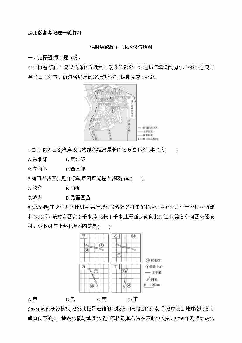 课时突破练1 地球仪与地图(含答案)