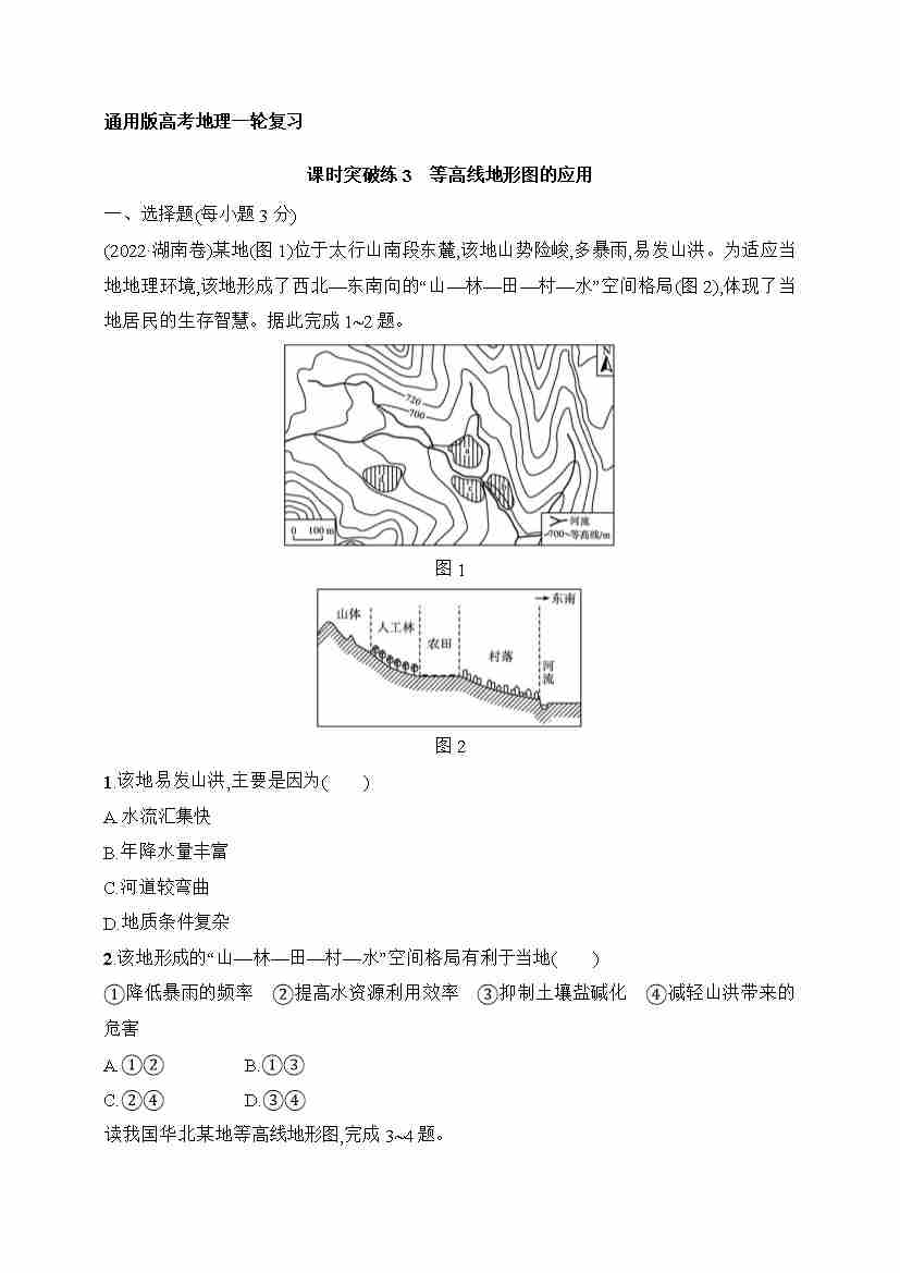 课时突破练3 等高线地形图的应用(含答案)