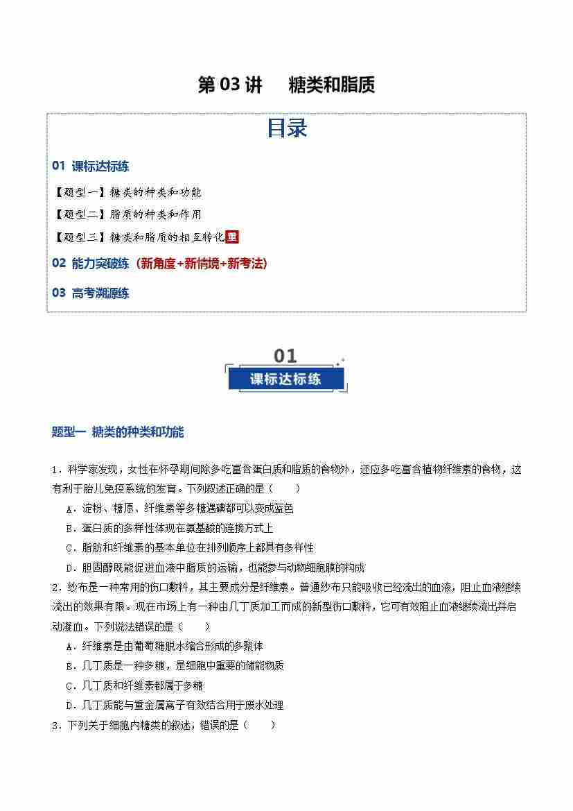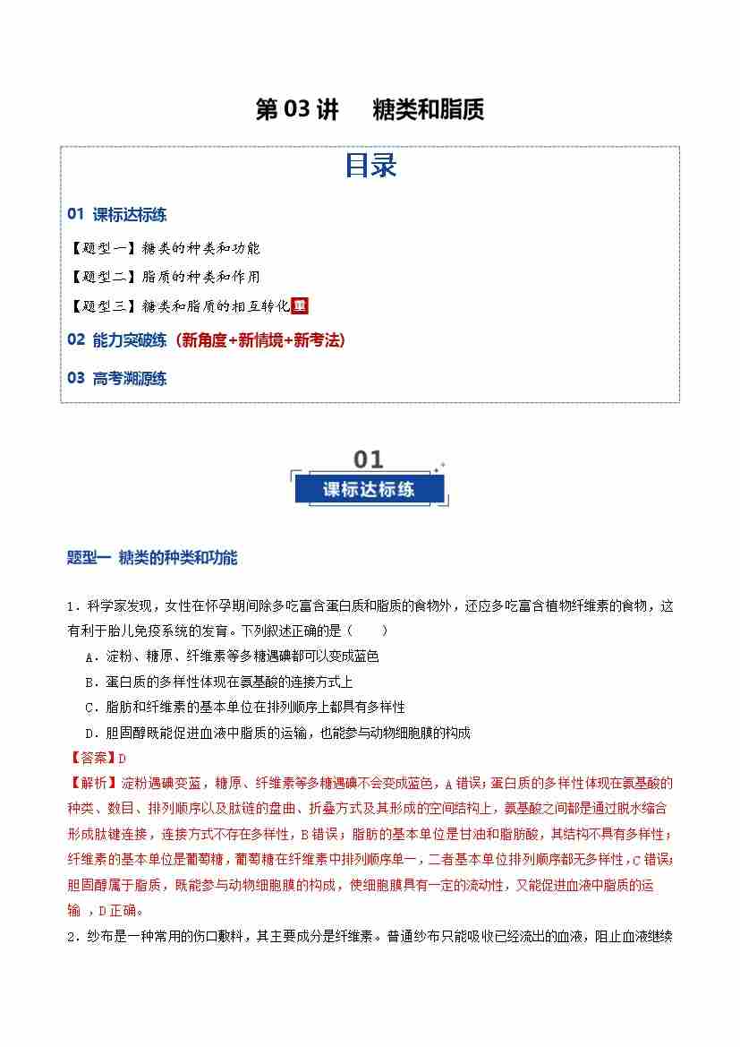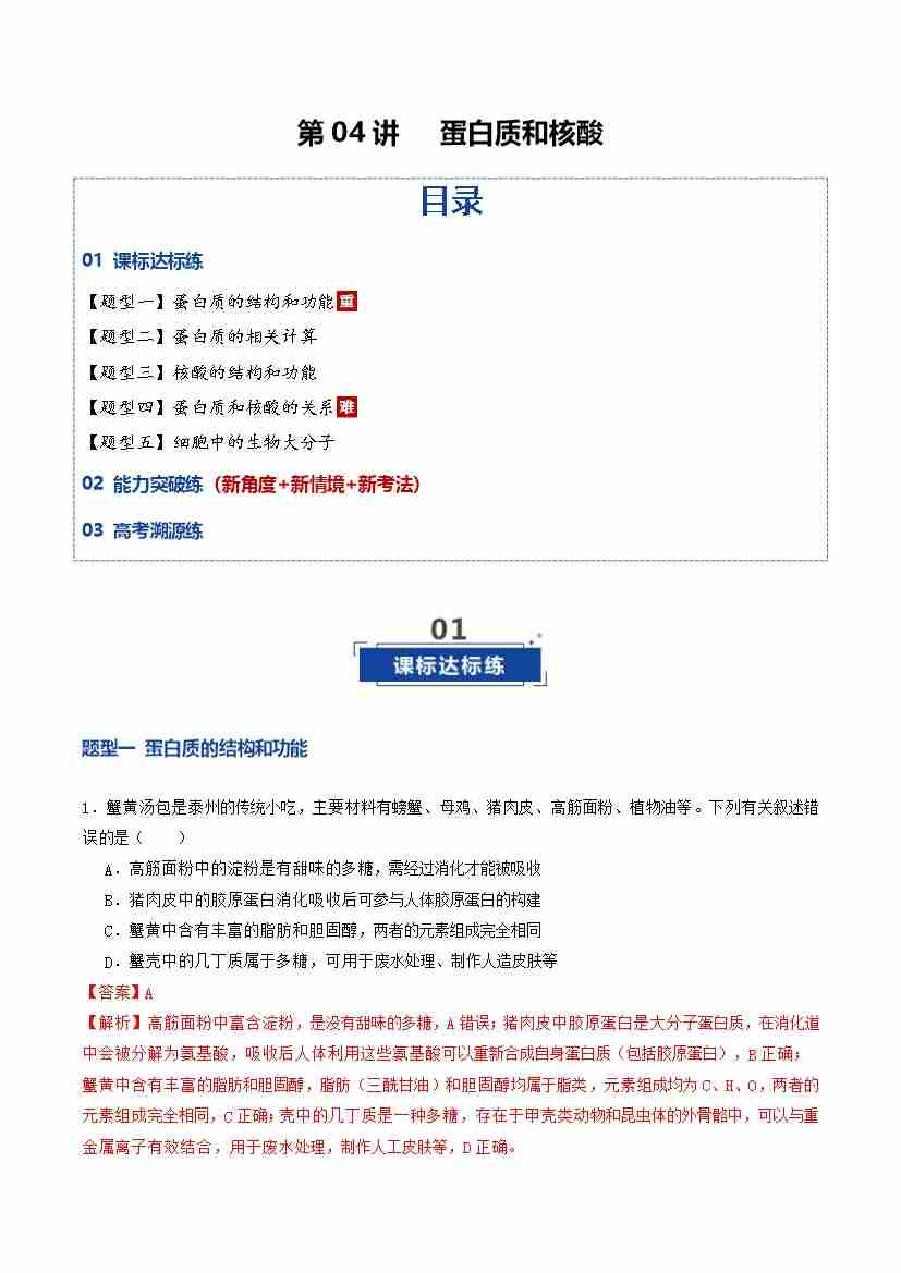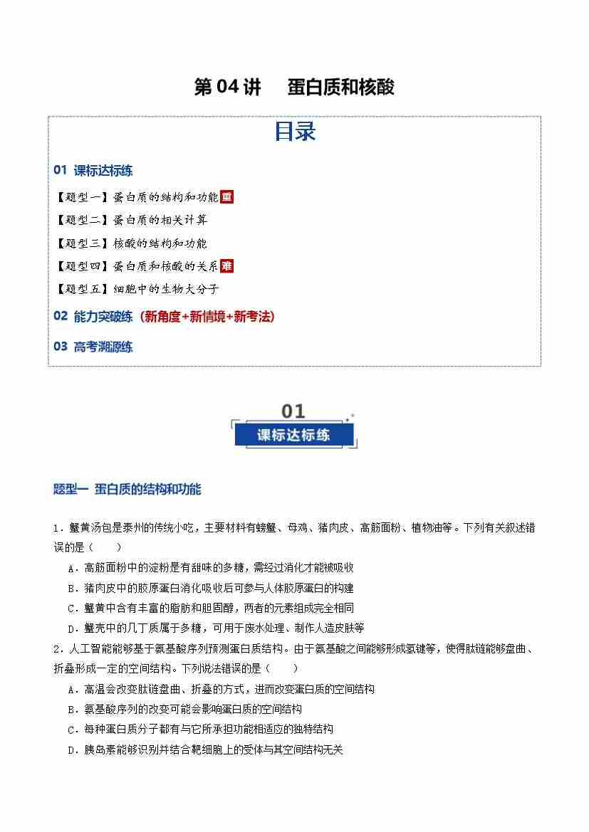 第04讲 蛋白质和核酸(专项训练)(学生版)