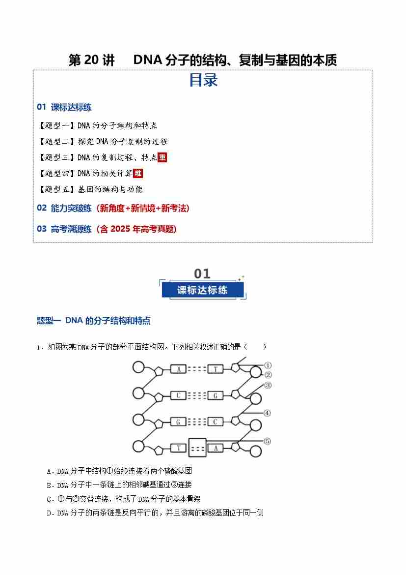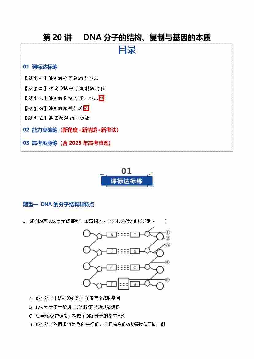 第20讲 DNA分子的结构、复制与基因的本质(专项训练)(学生版)