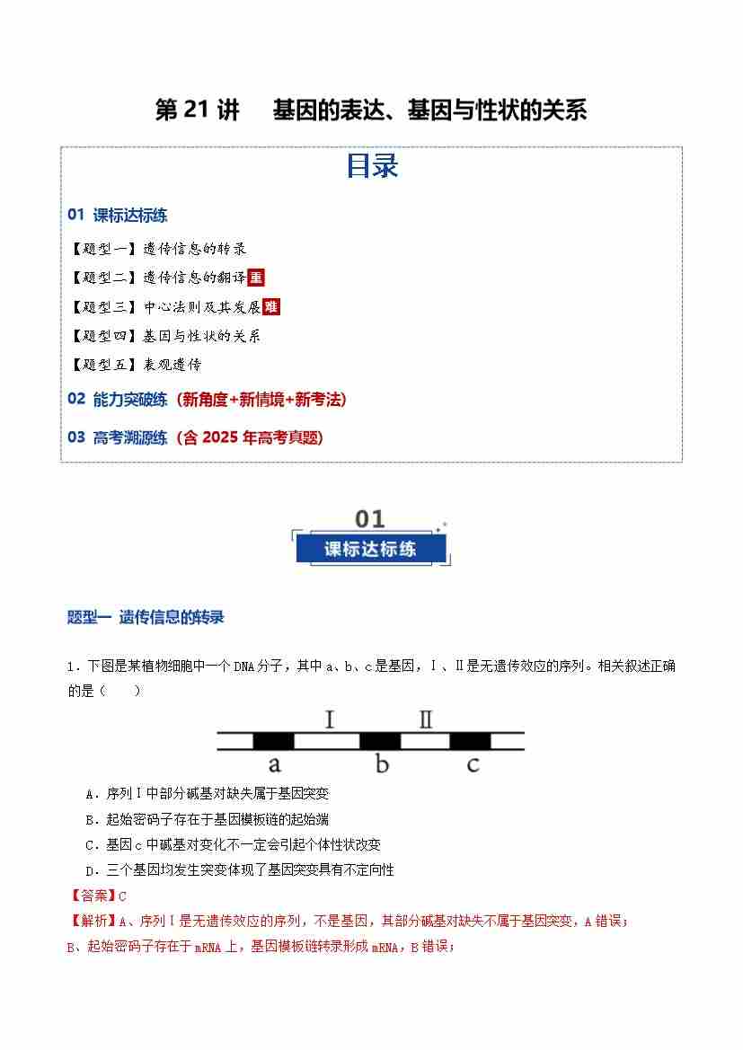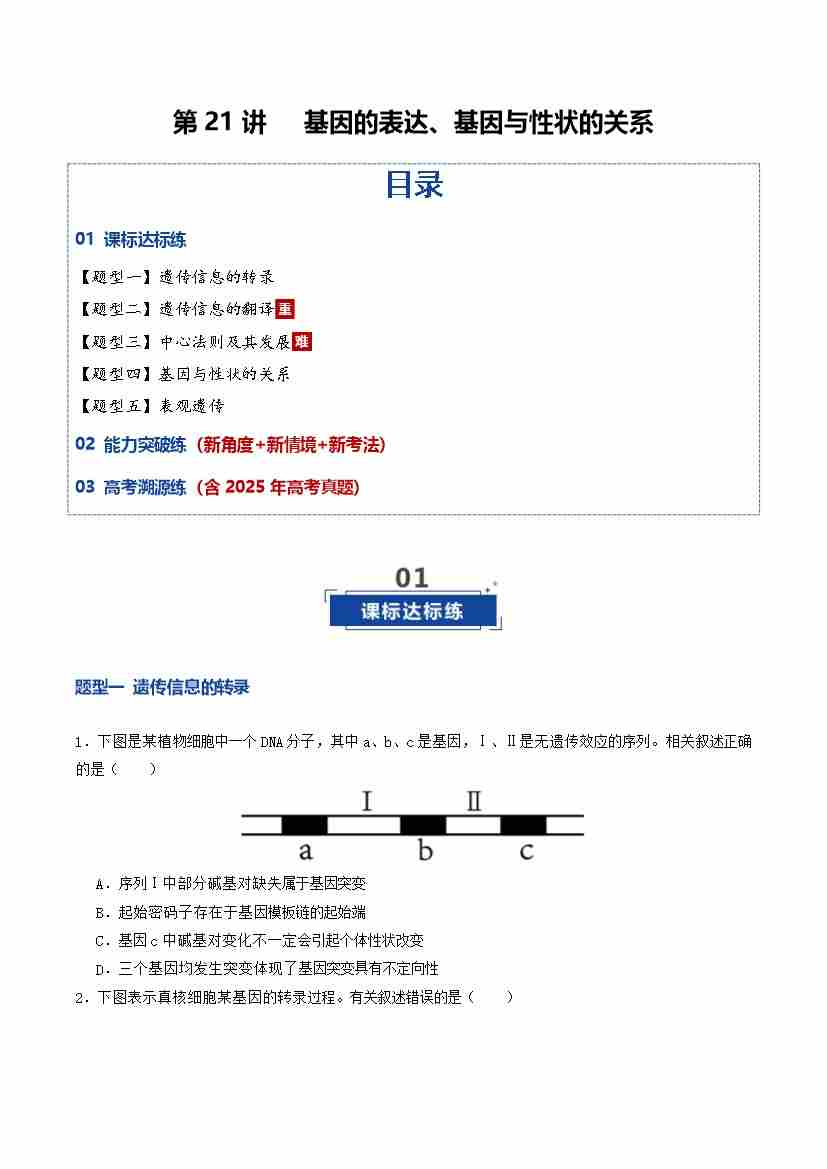 第21讲 基因的表达、基因与性状的关系(专项训练)(学生版)