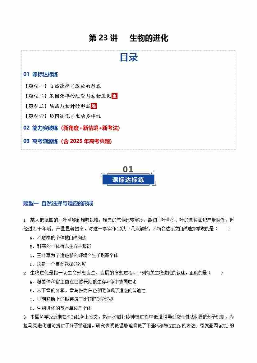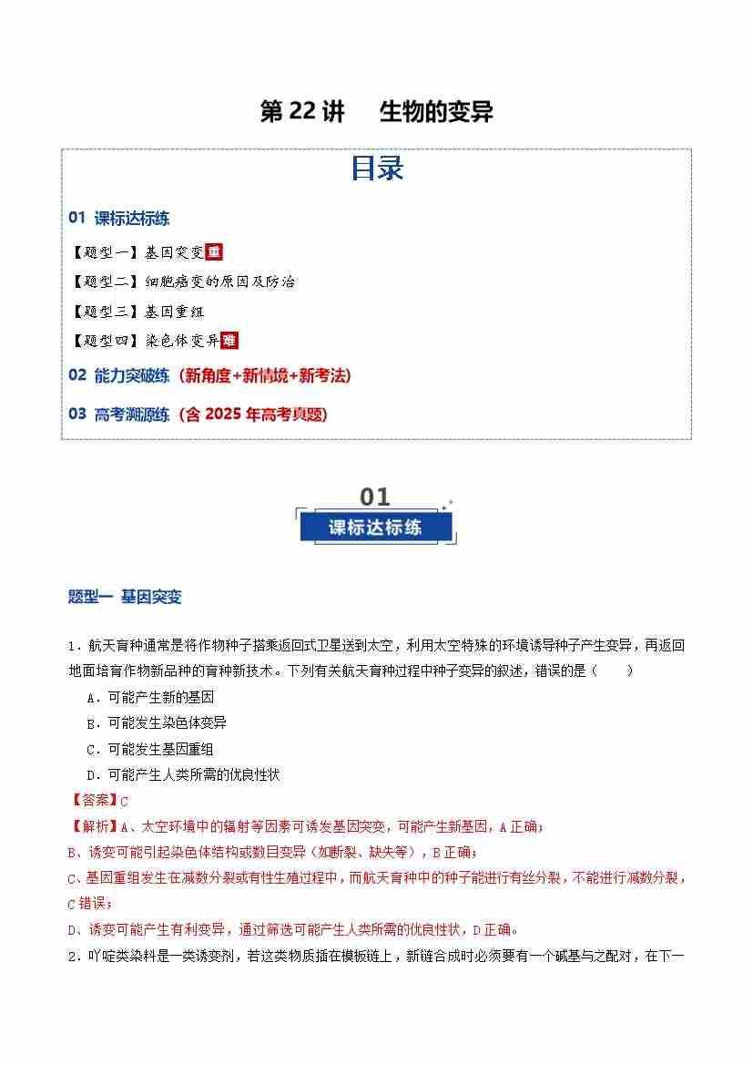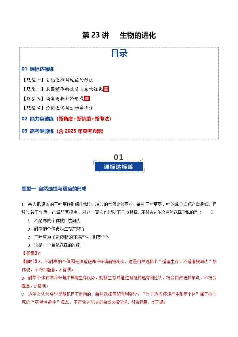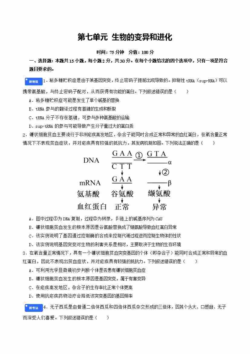 第七单元 生物的变异和进化(综合训练)(学生版)(全国通用)