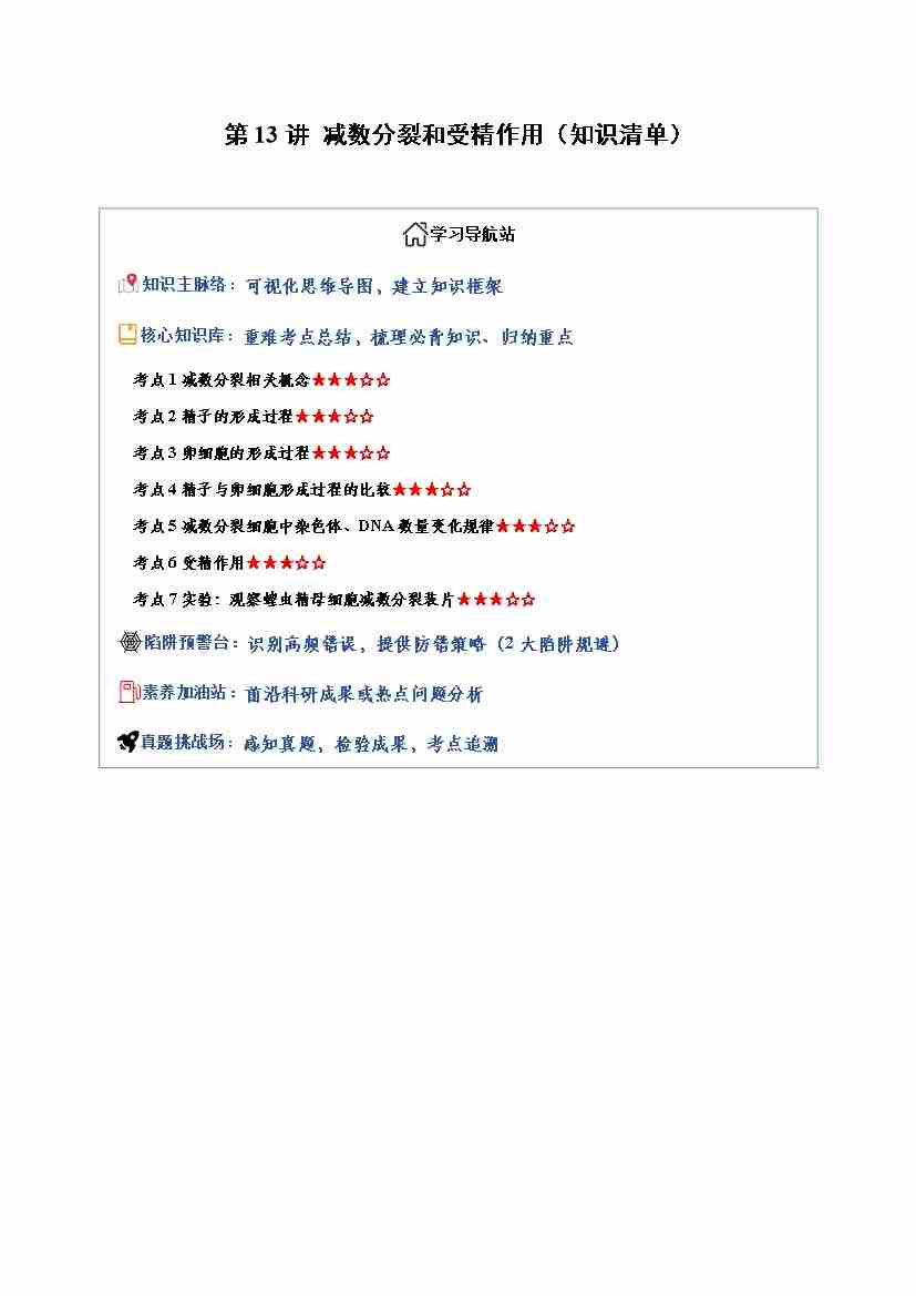 第13讲 减数分裂和受精作用(知识清单)(全国通用)(学生版)