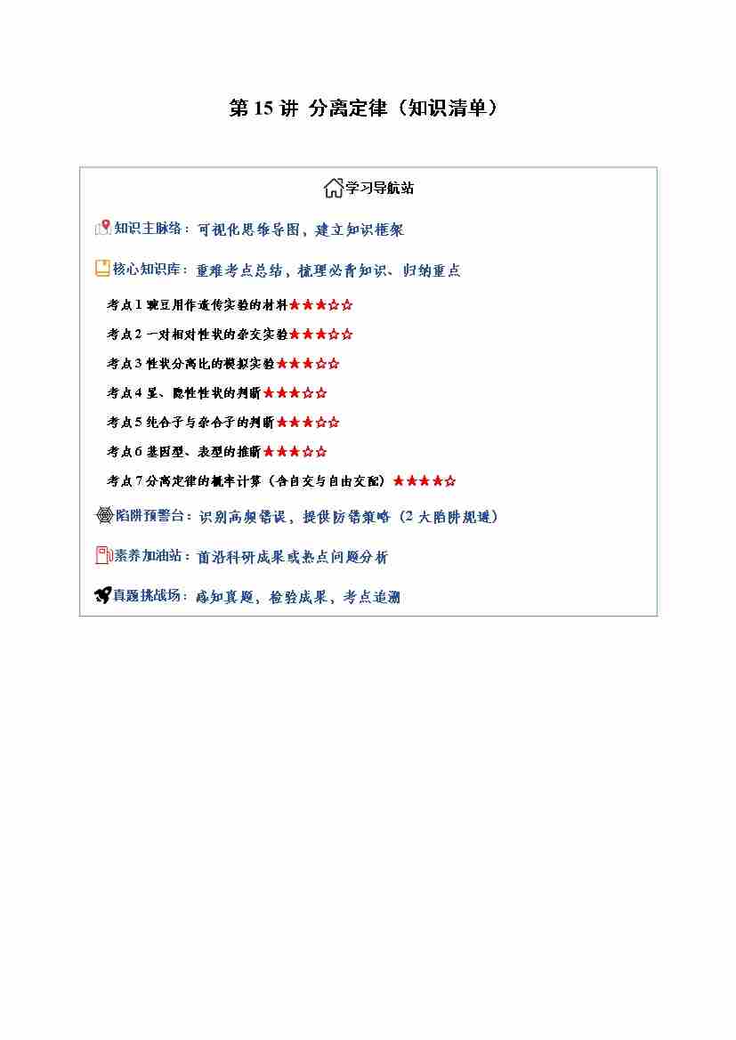 第15讲 分离定律(知识清单)(全国通用)(学生版)