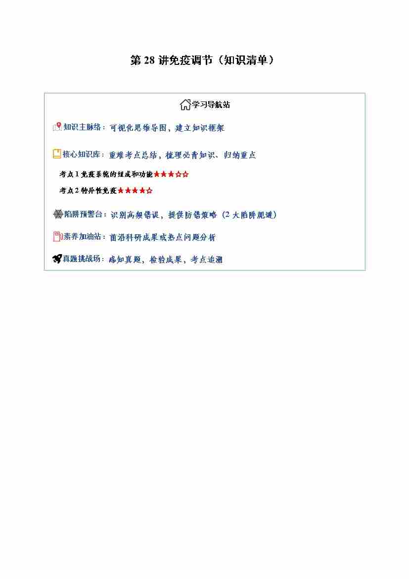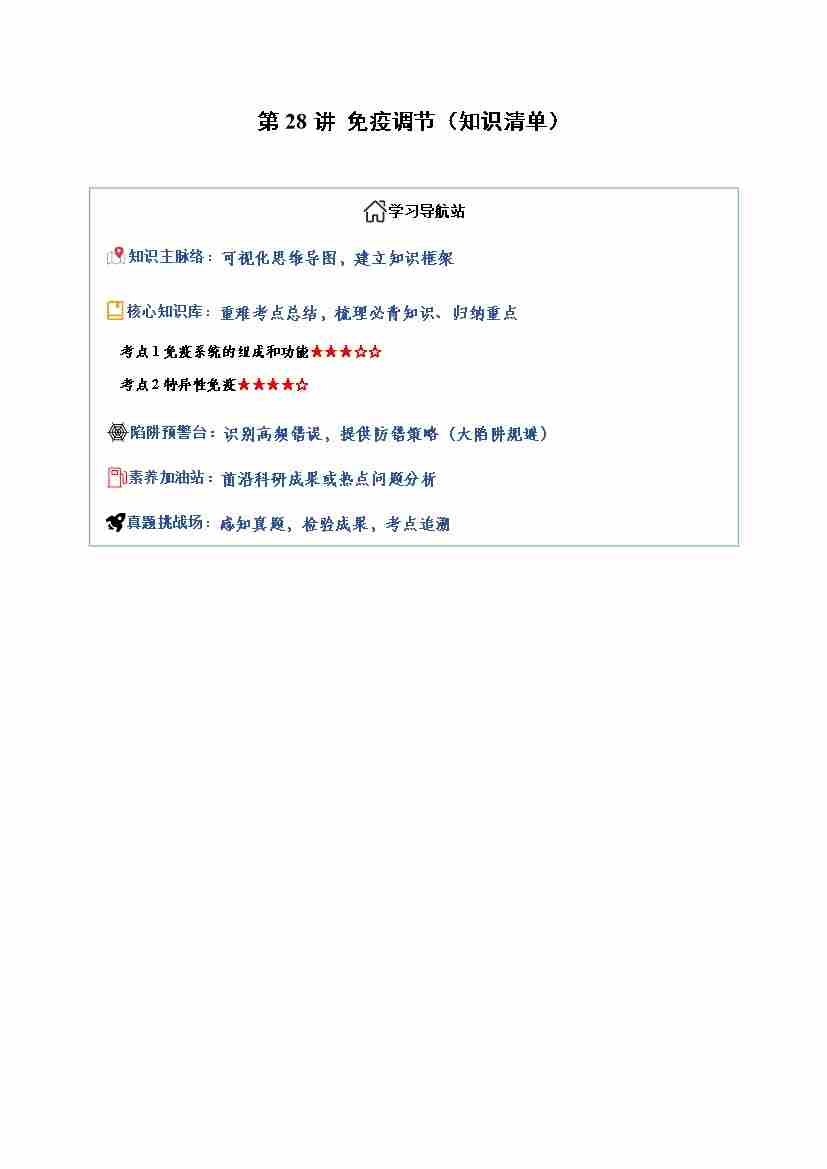 第28讲 免疫调节(知识清单)(全国通用)(学生版)