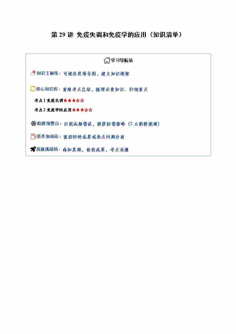 第29讲 免疫失调和免疫学的应用(知识清单)(全国通用)(学生版)