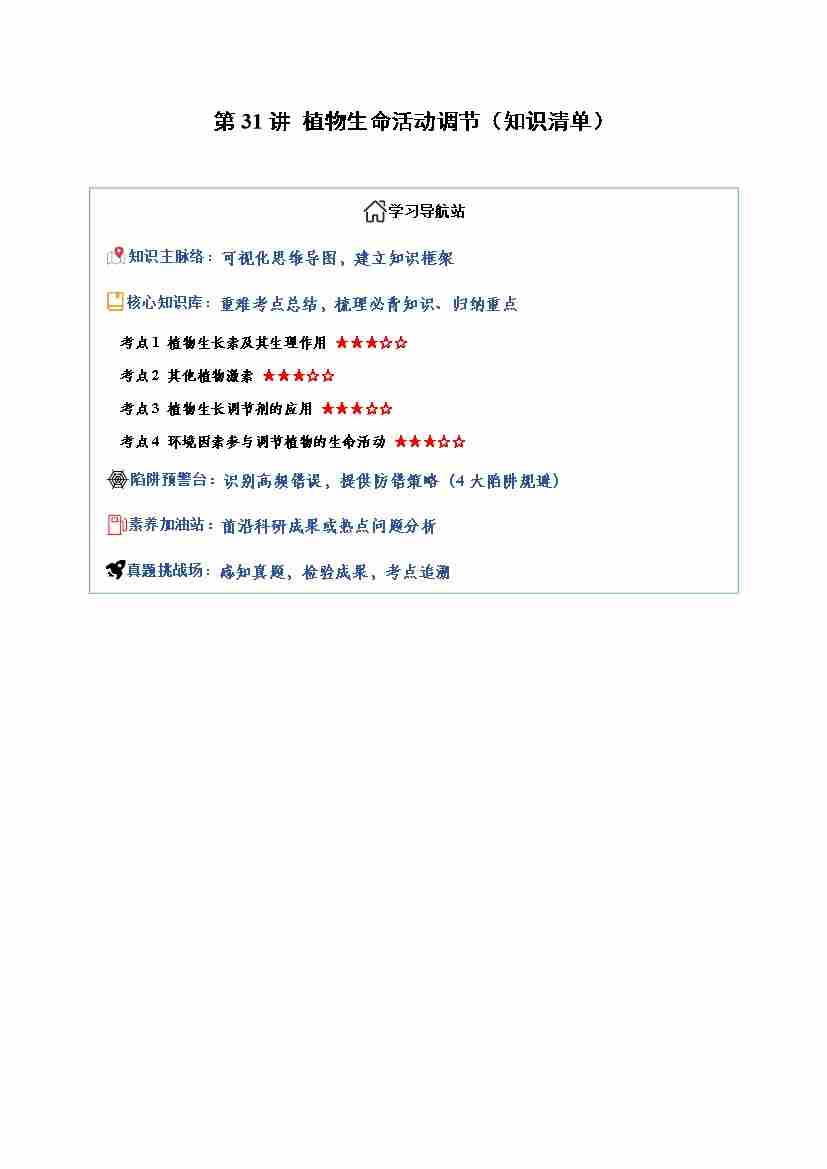 第31讲 植物生命活动调节(知识清单)(全国通用)(学生版)