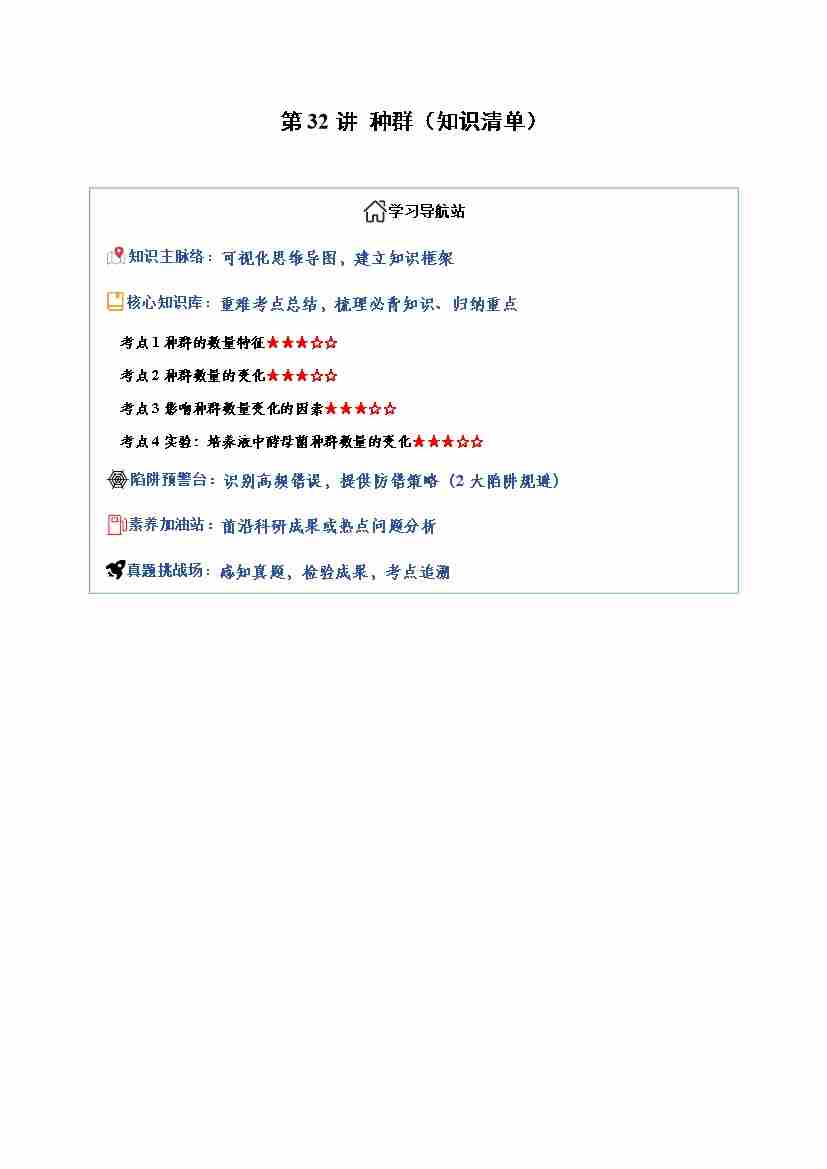 第32讲 种群(知识清单)(全国通用)(学生版)