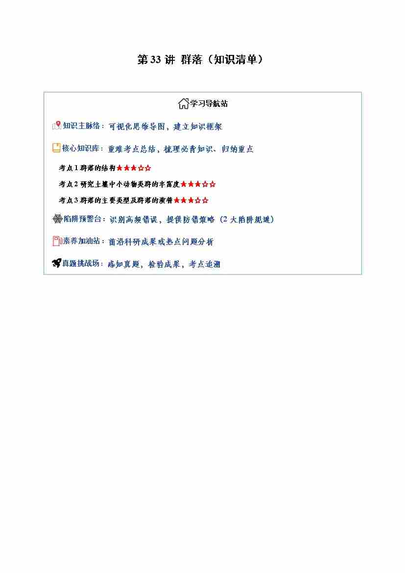 第33讲 群落(知识清单)(全国通用)(学生版)
