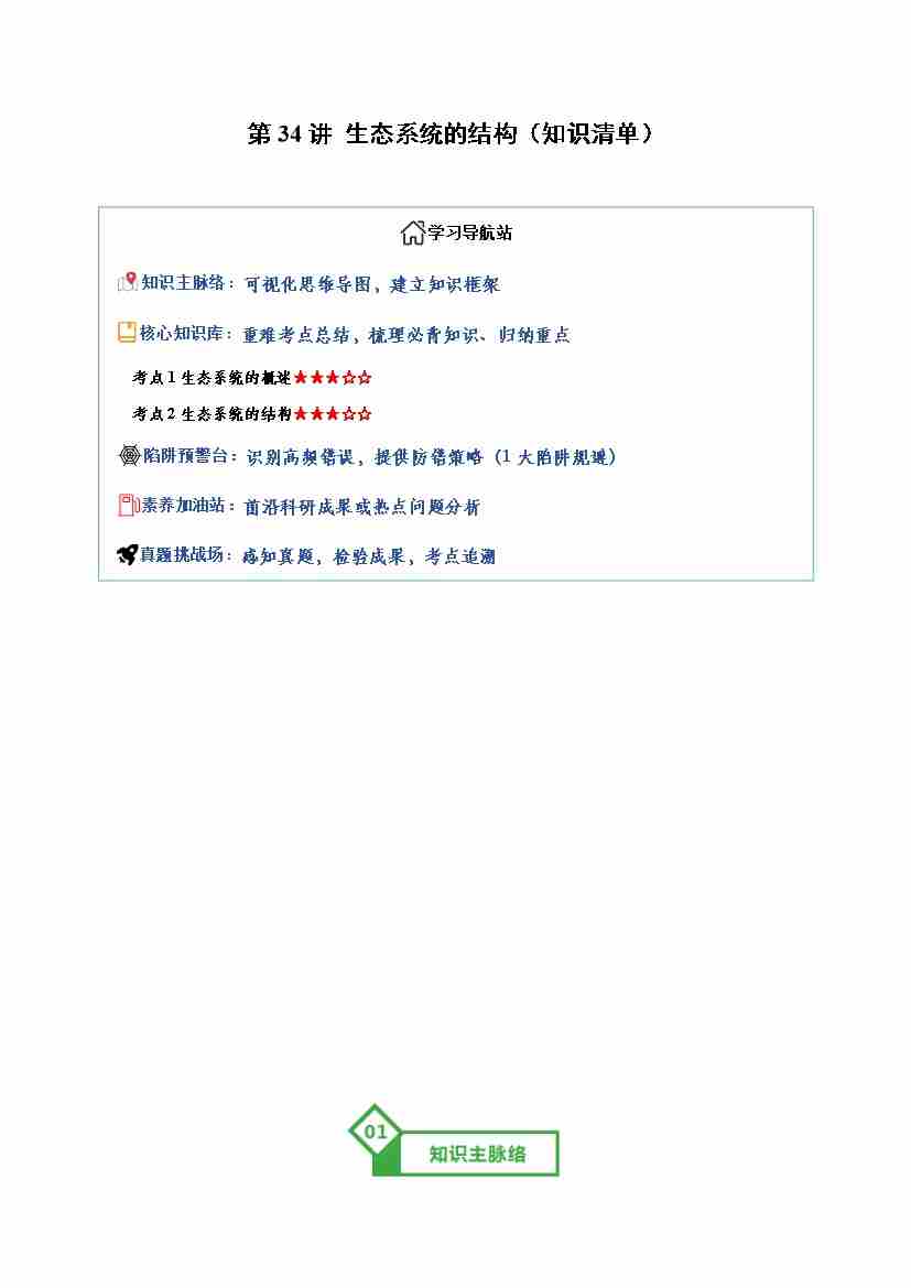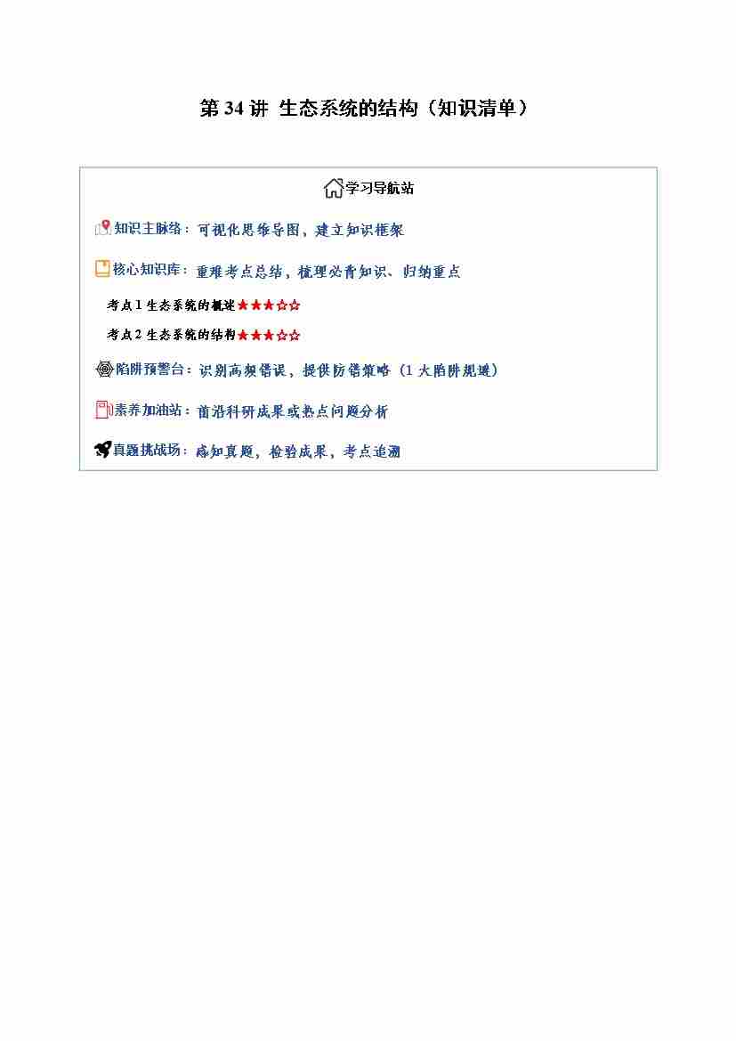 第34讲 生态系统的结构(知识清单)(全国通用)(学生版)