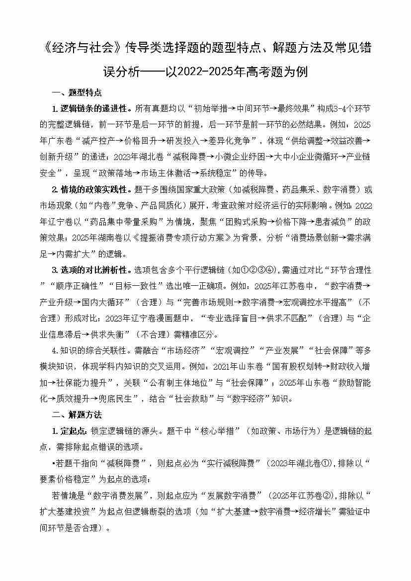 经济与社会 传导类选择题的题型特点、解题方法及常见错误分析
