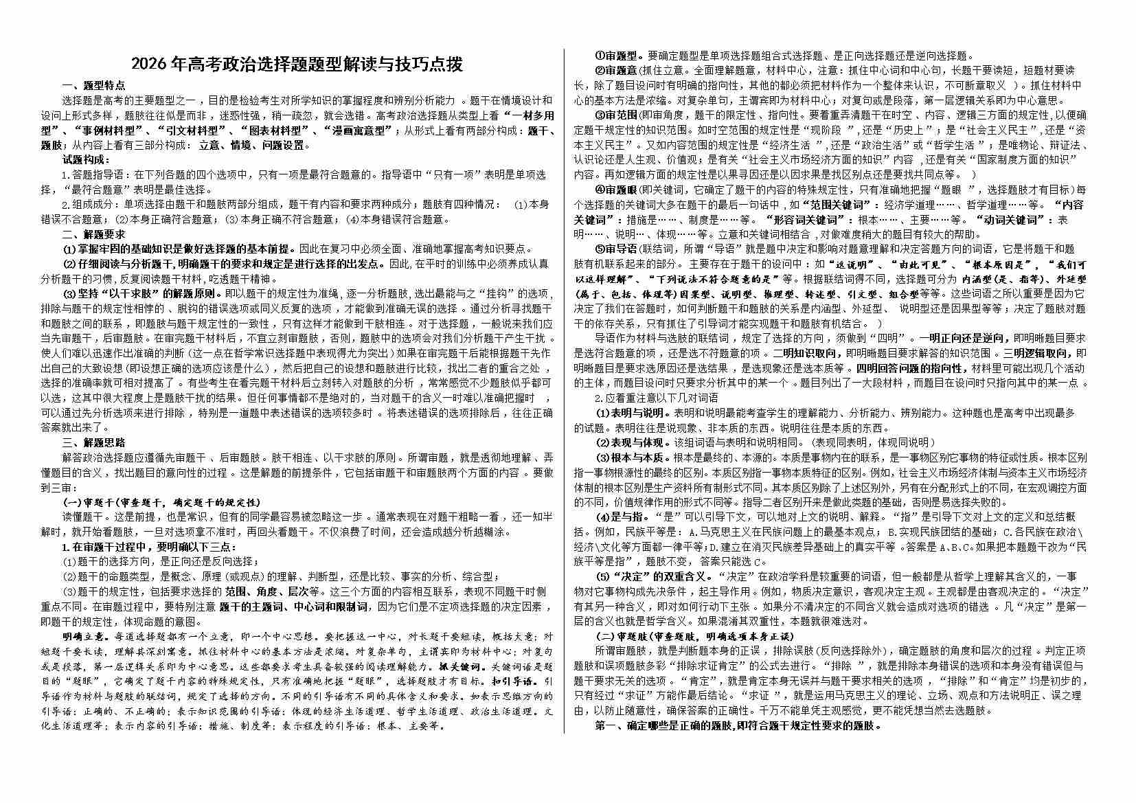 选择题题型解读与技巧点拨-2026届高考政治二轮复习统编版