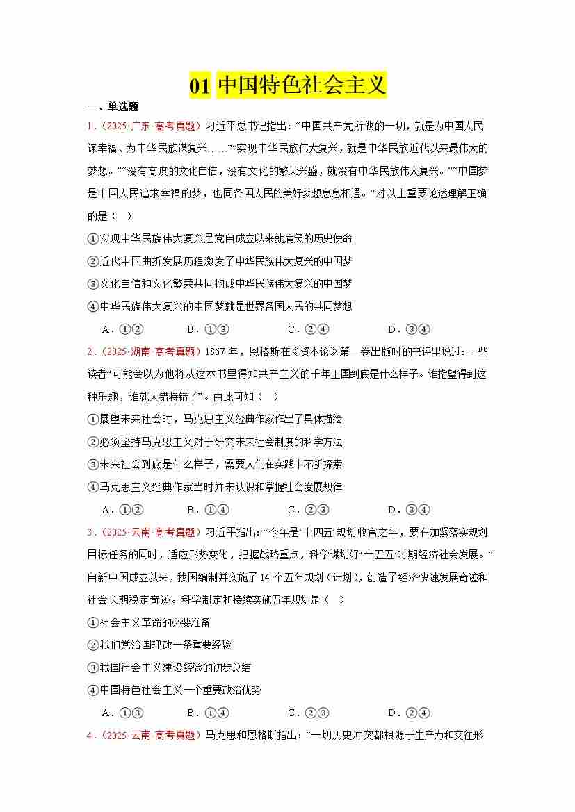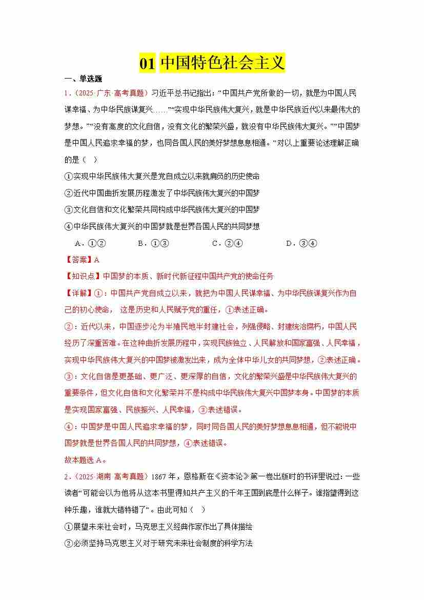 晚练重难点1--中国特色社会主义(教师版)-25页