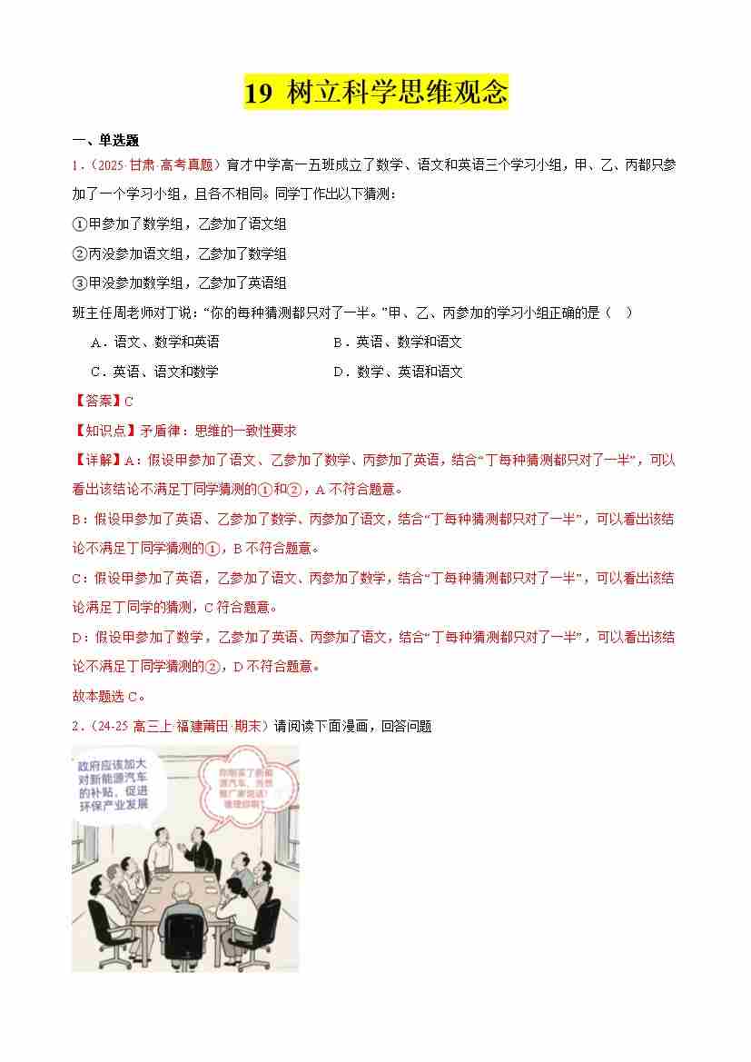晚练重难点19--树立科学思维观念(教师版)-24页