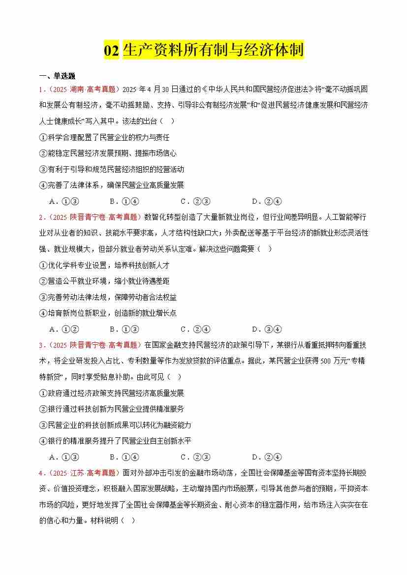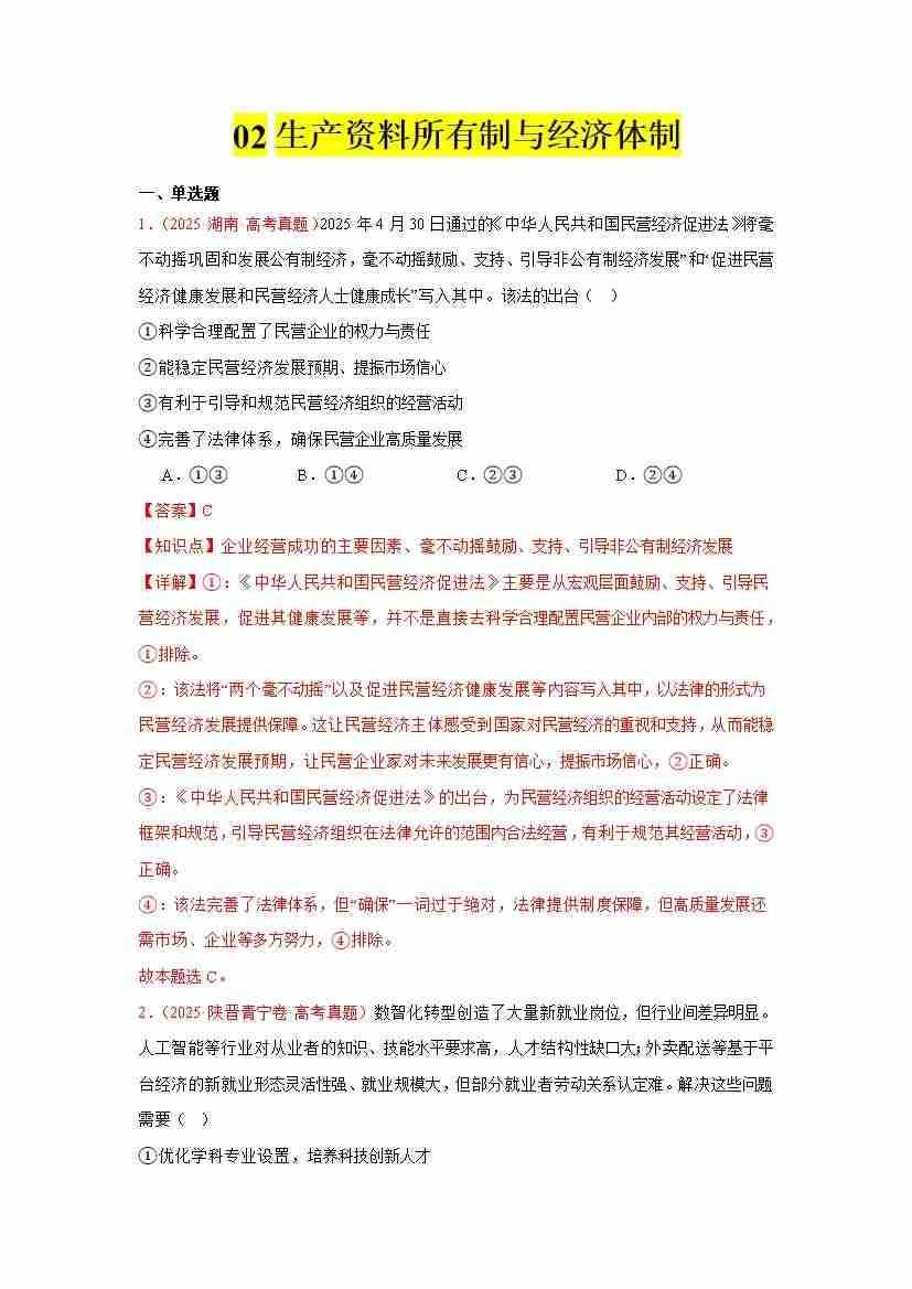 晚练重难点2--生产资料所有制与经济体制(学生版)-13页