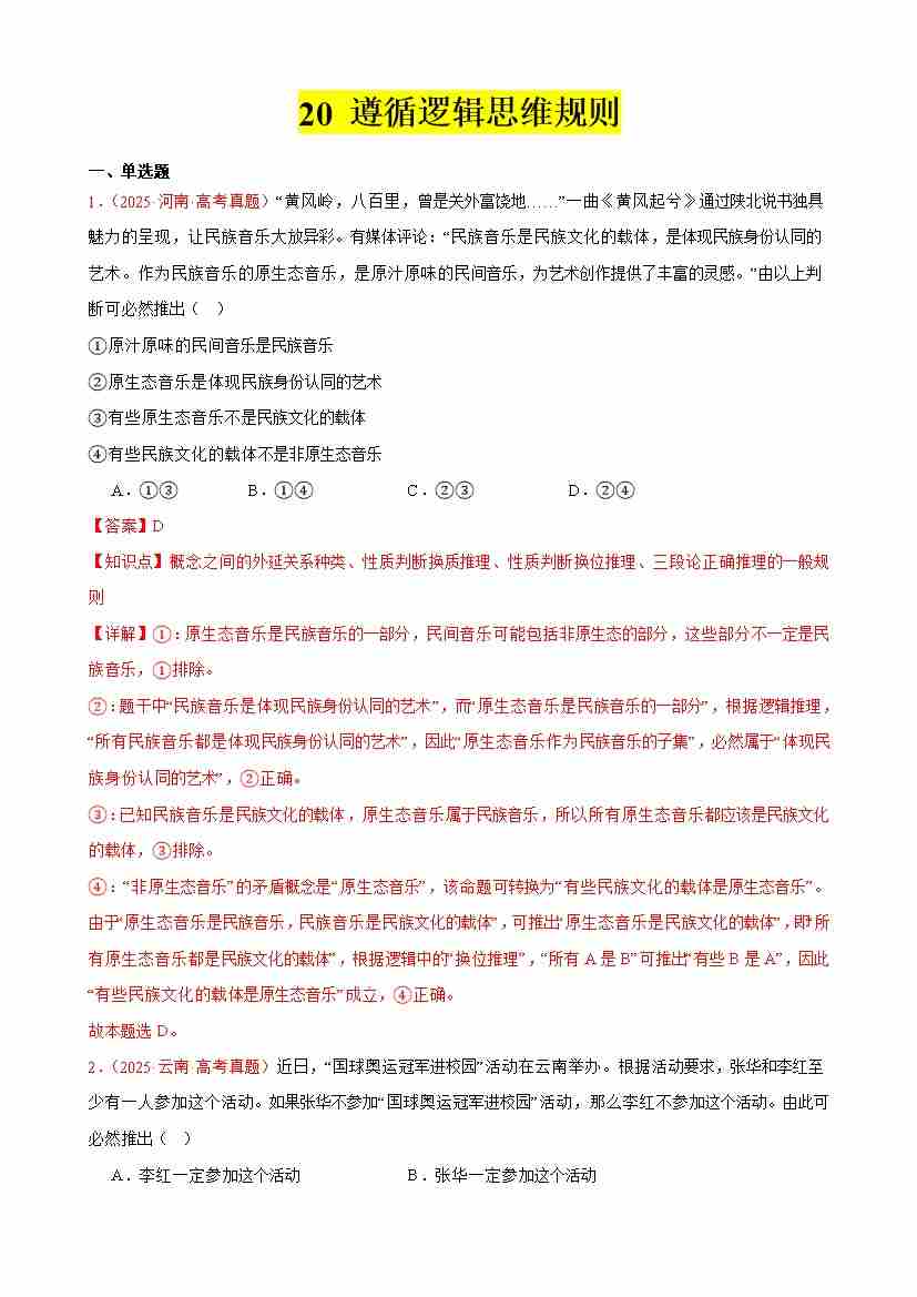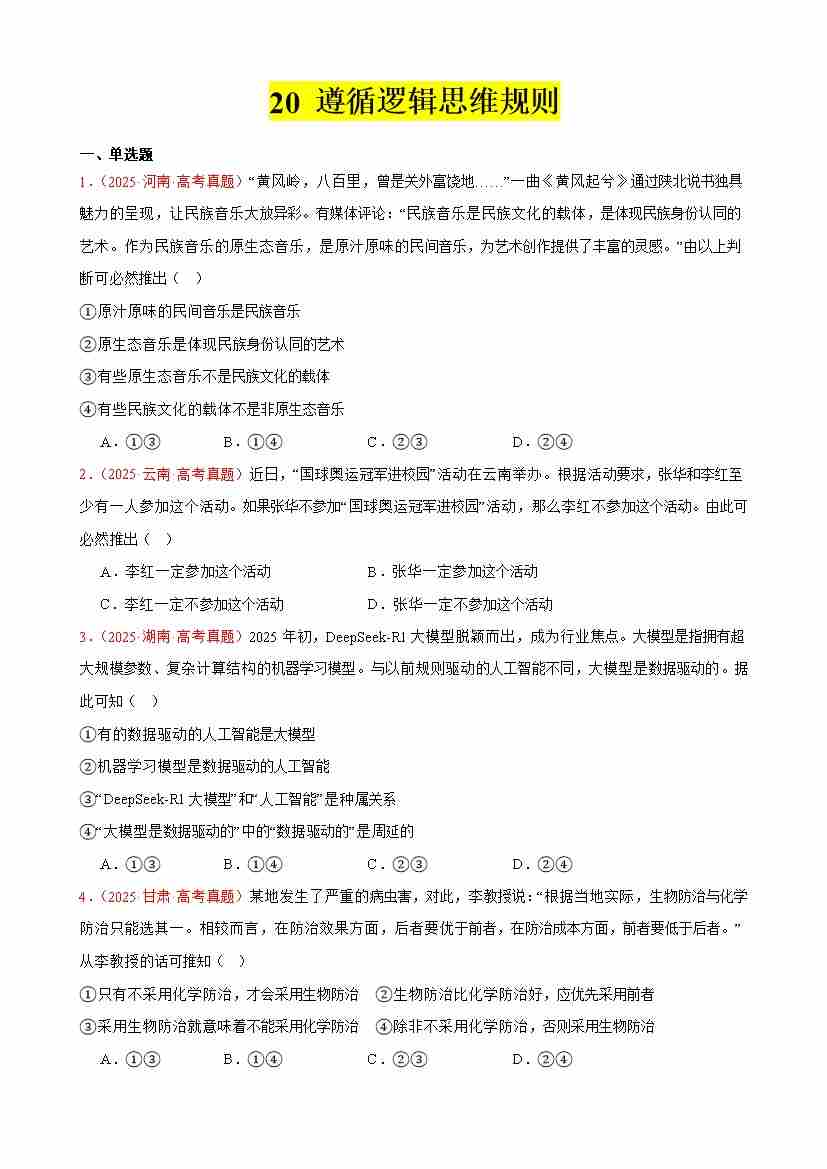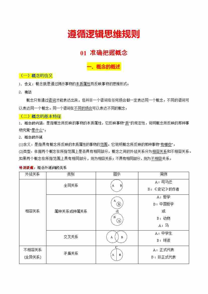 晚练重难点20--遵循逻辑思维规则(学生版)-12页