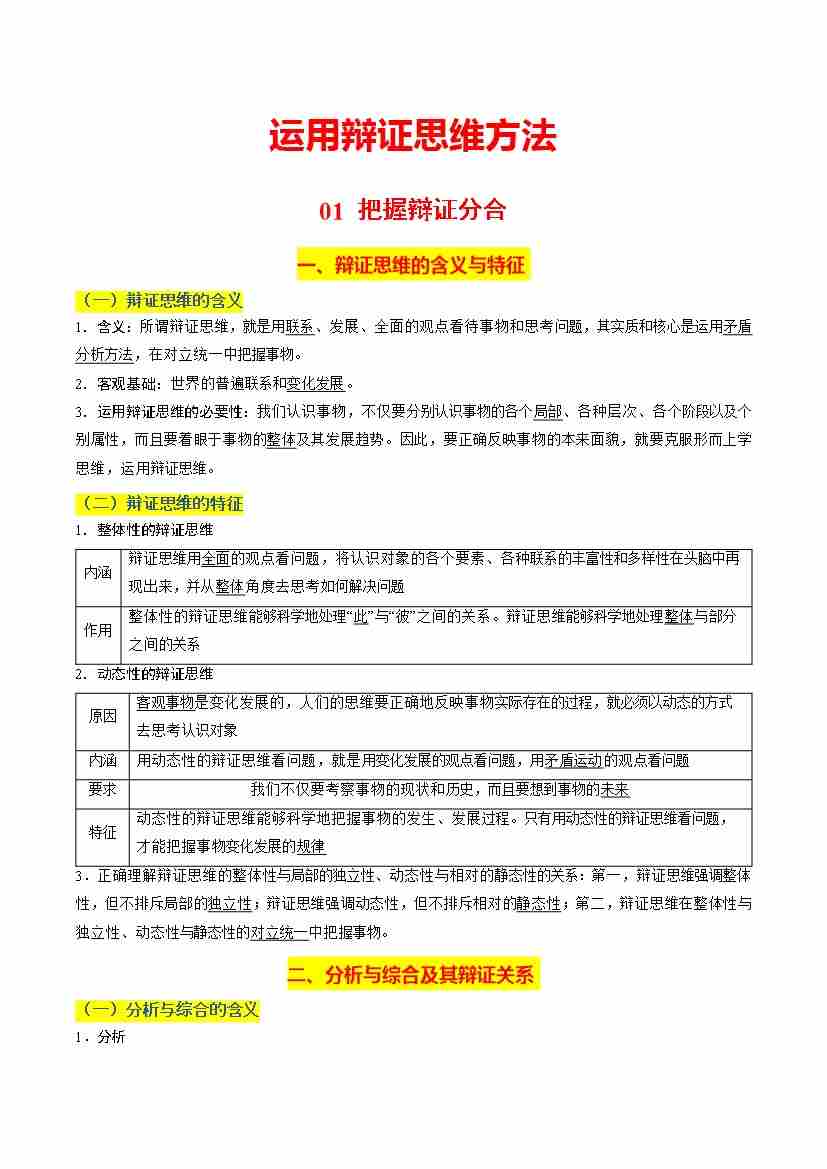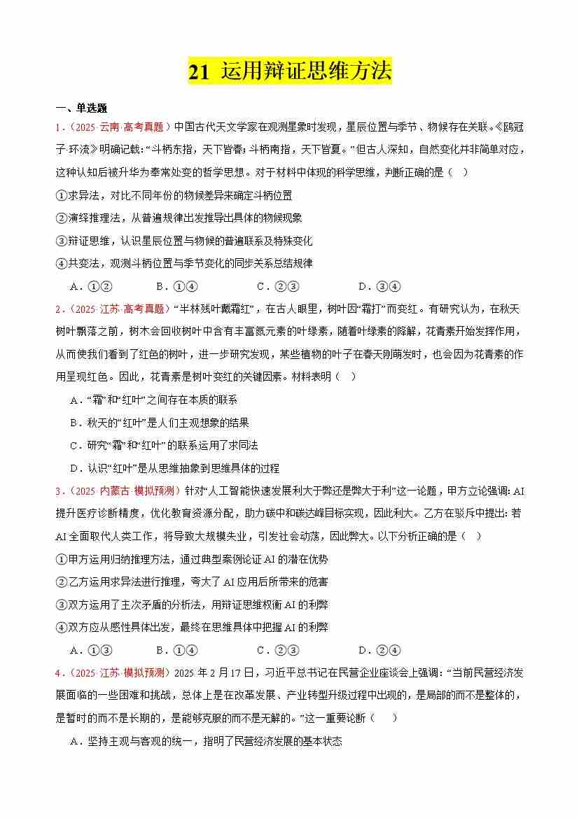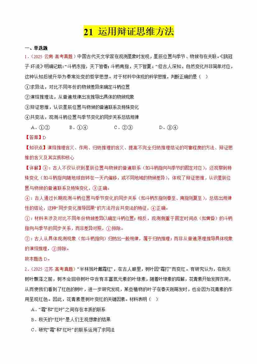 晚练重难点21--运用辩证思维方法(学生版)-12页