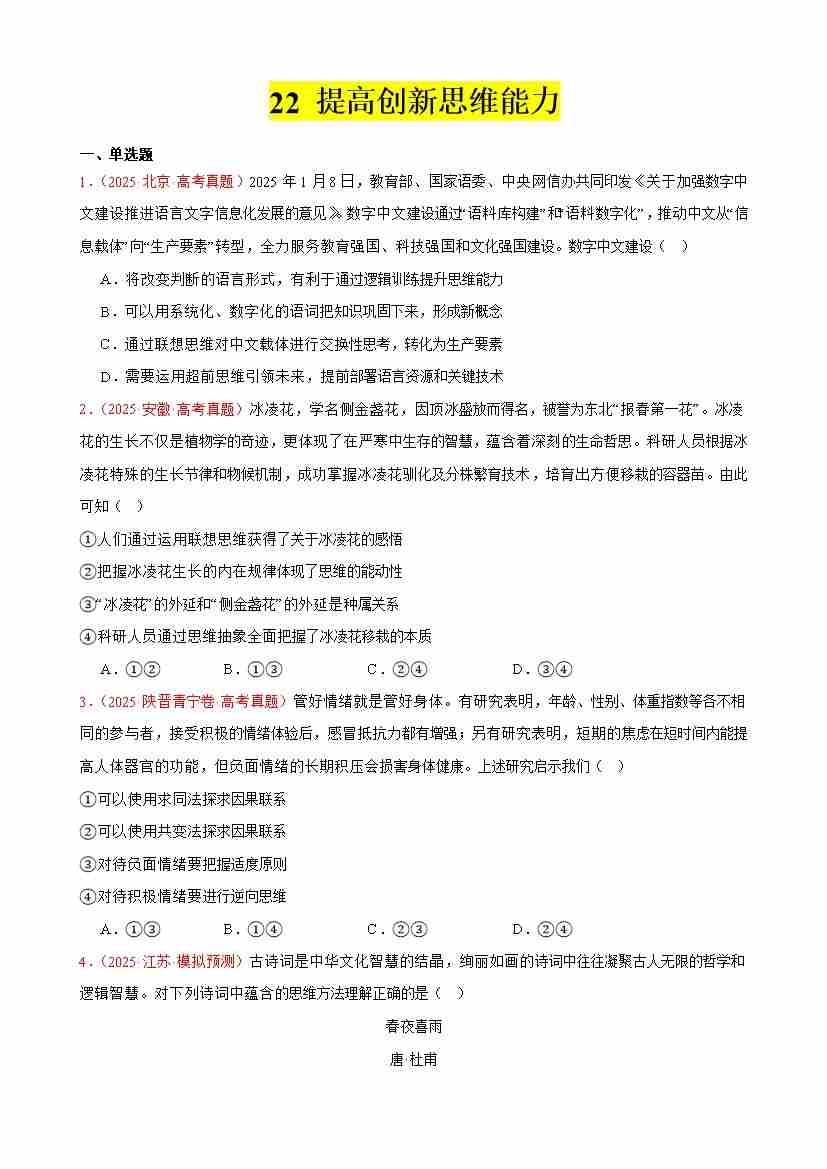 晚练重难点22--提高创新思维能力(学生版)-11页