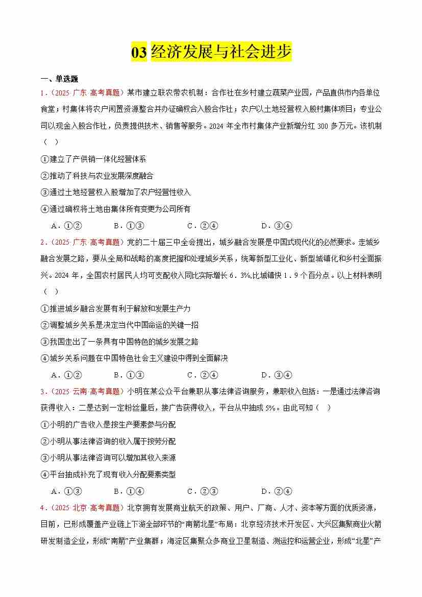 晚练重难点3--经济发展与社会进步(学生版)-13页