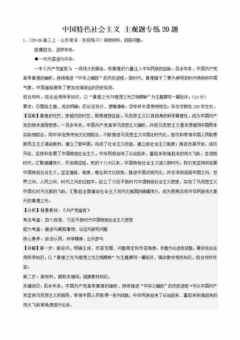 中国特色社会主义 主观题专练20题 (教师版)(全国通用)