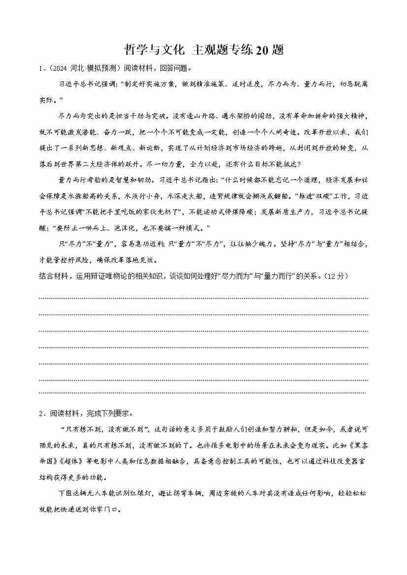 哲学与文化 主观题专练20题(学生版)(全国通用)