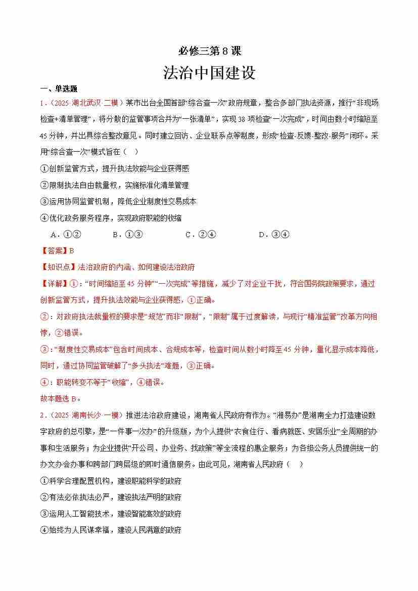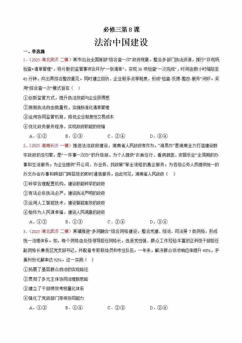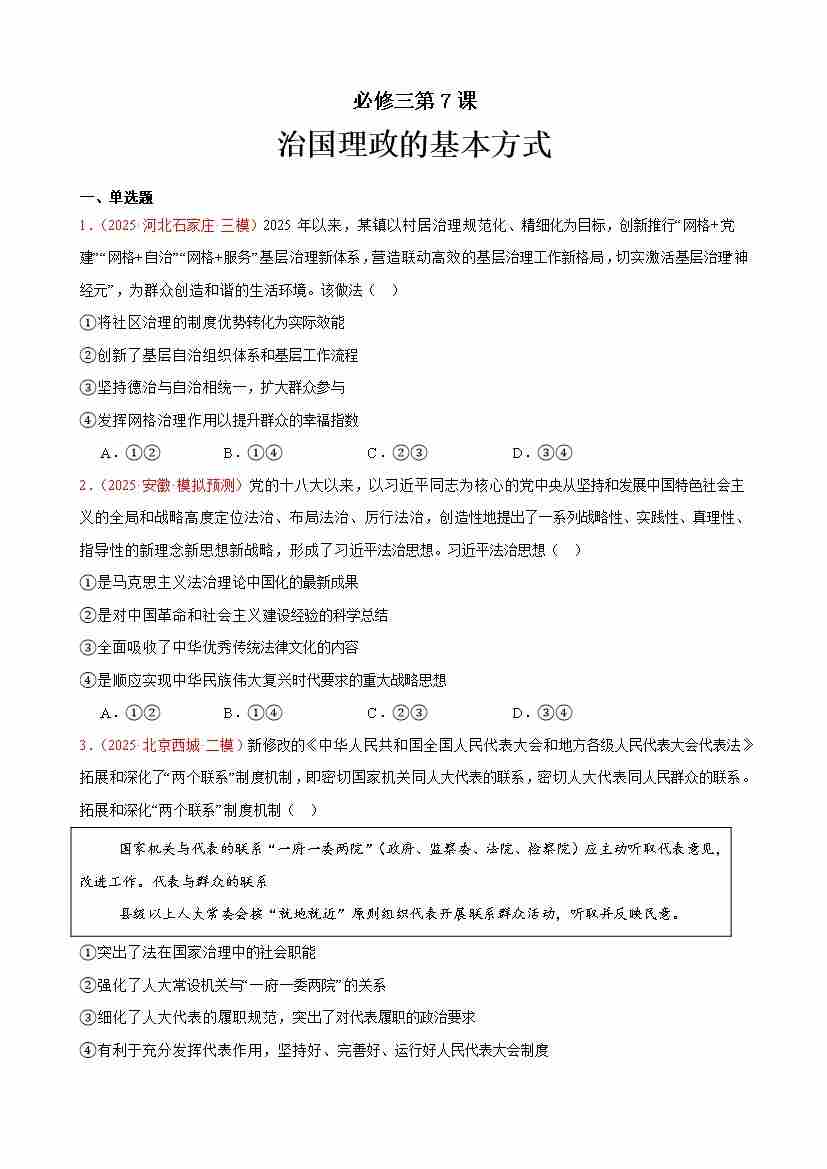 (第19练)必修三第7课治国理政的基本方式---(学生版)
