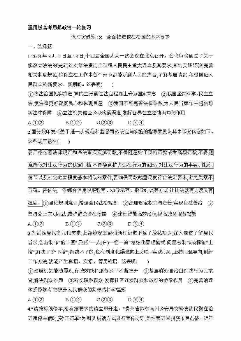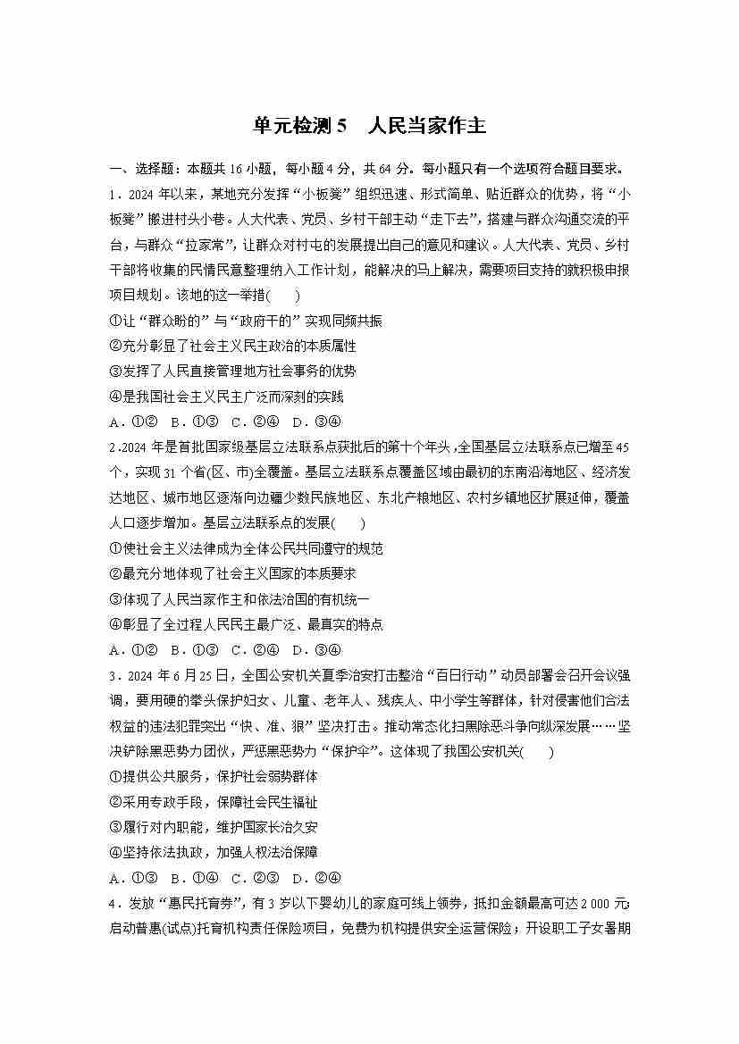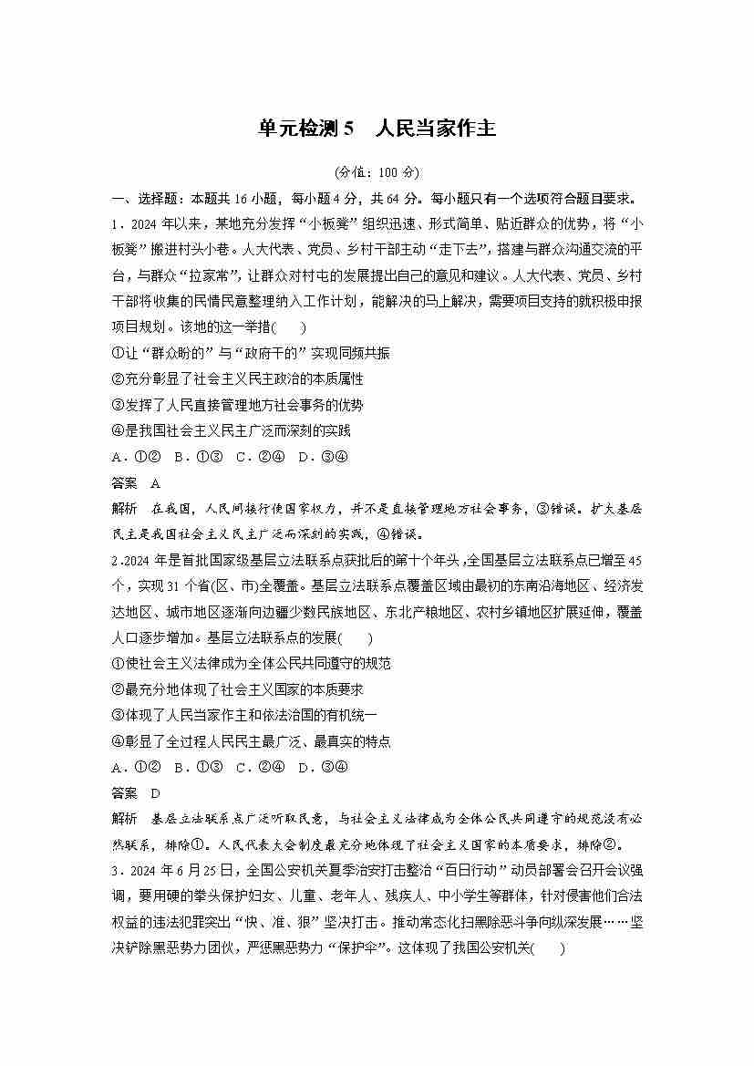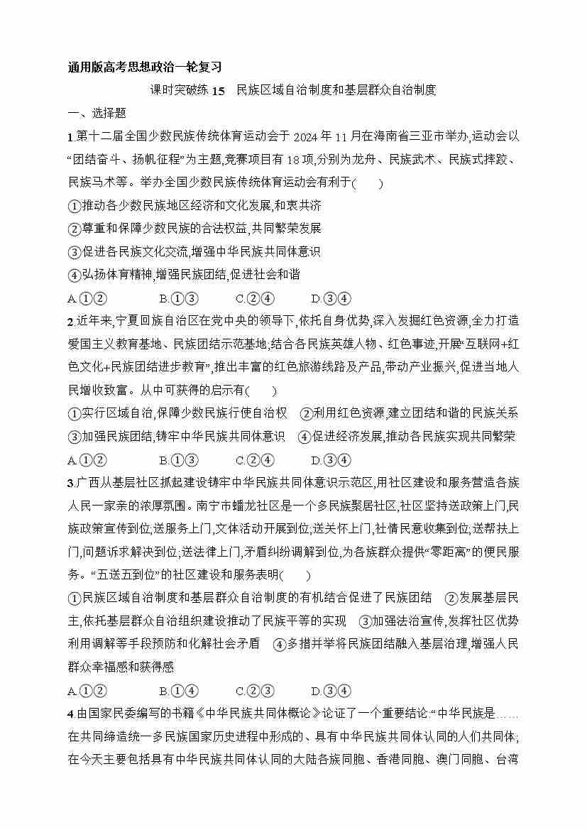课时突破练15 民族区域自治制度和基层群众自治制度