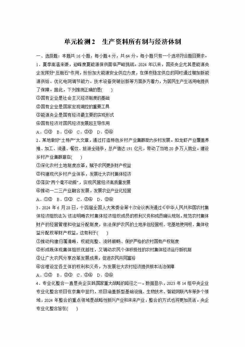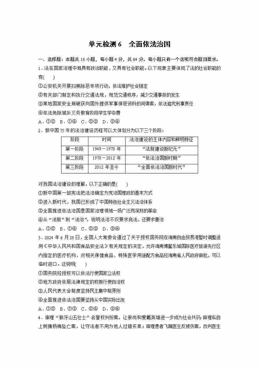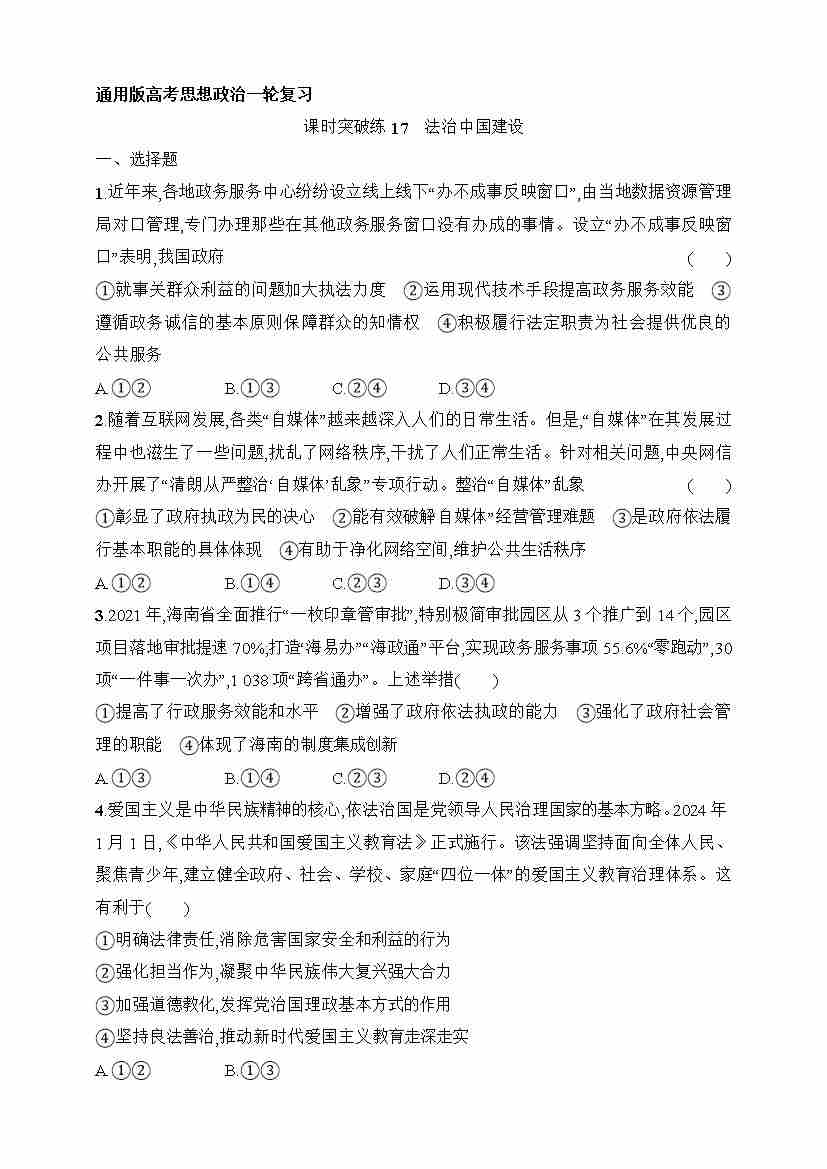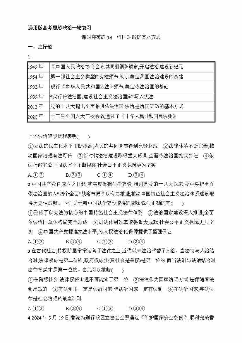 课时突破练15 民族区域自治制度和基层群众自治制度