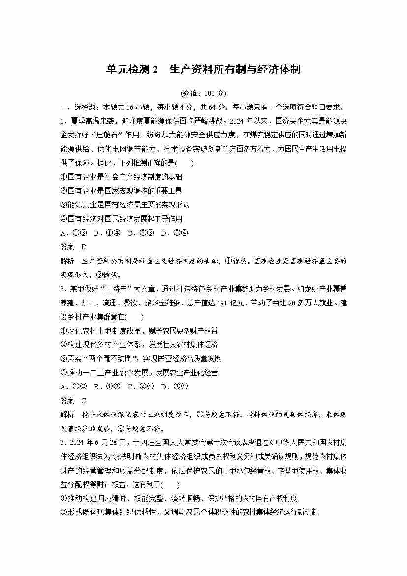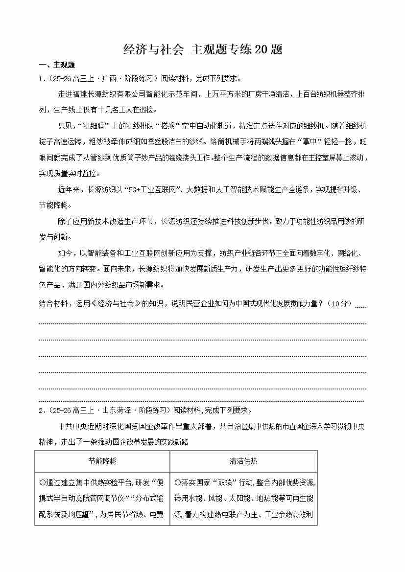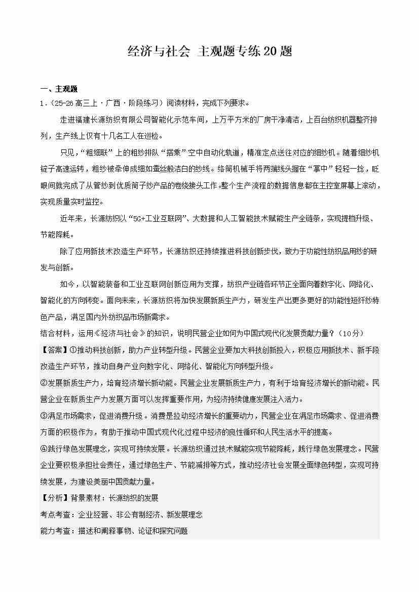 经济与社会 主观题专练20题 (教师版)(全国通用)