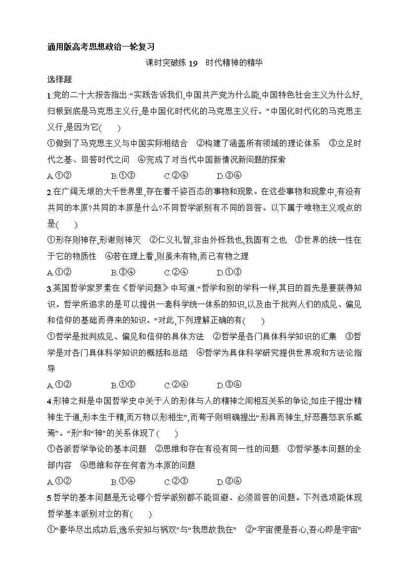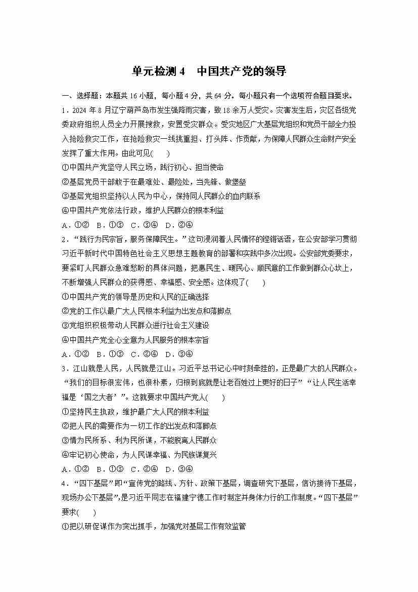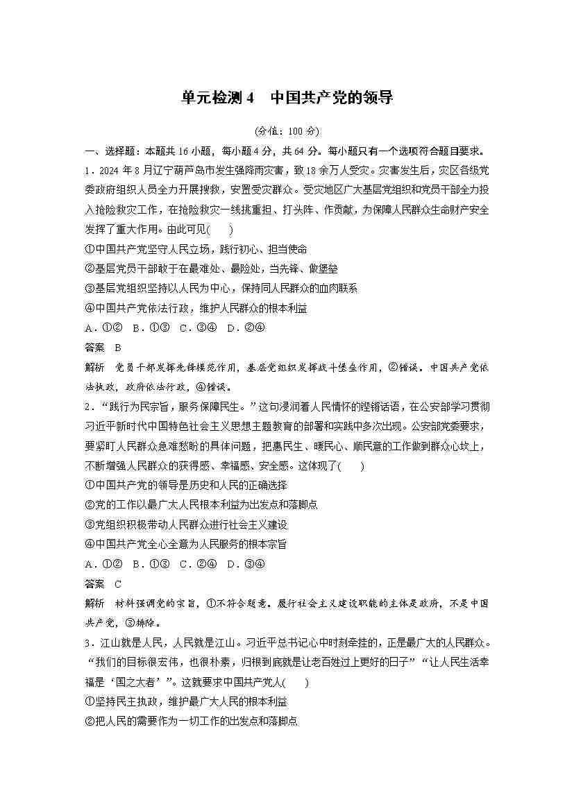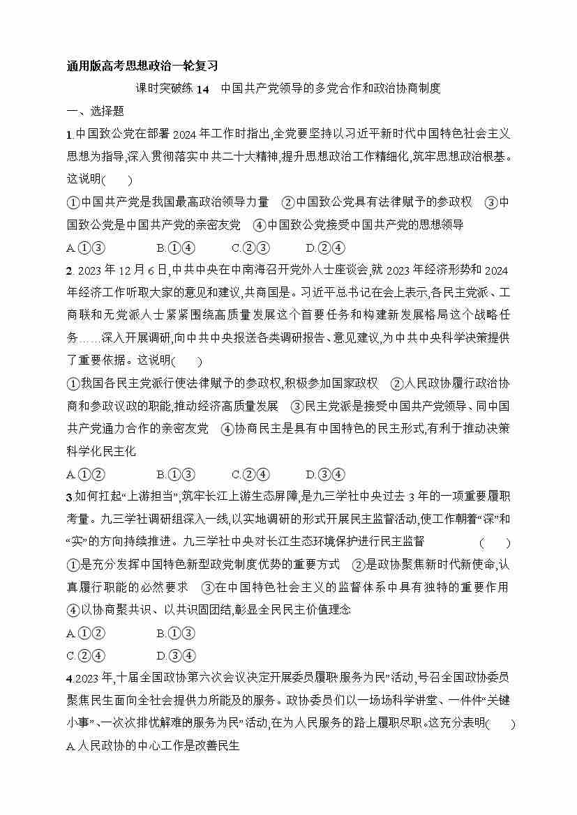 课时突破练14 中国共产党领导的多党合作和政治协商制度