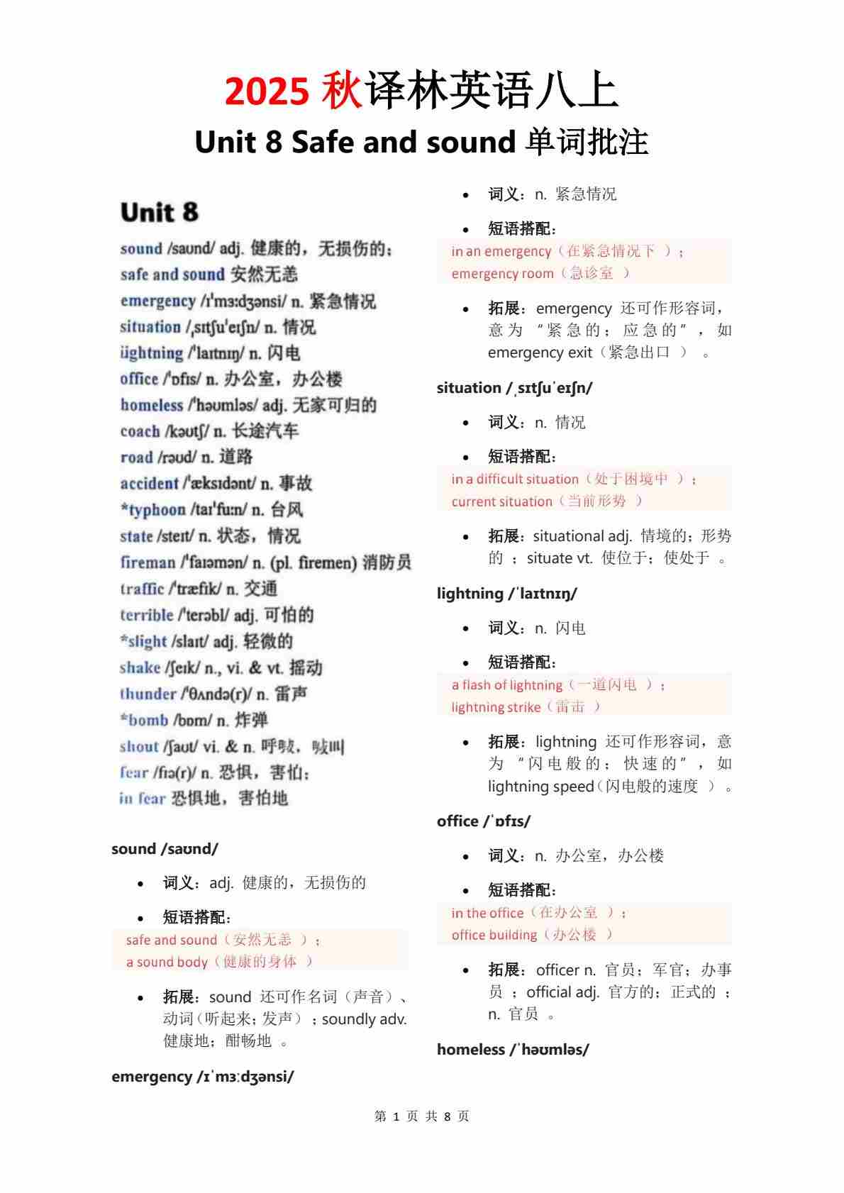 Unit 8 单词批注