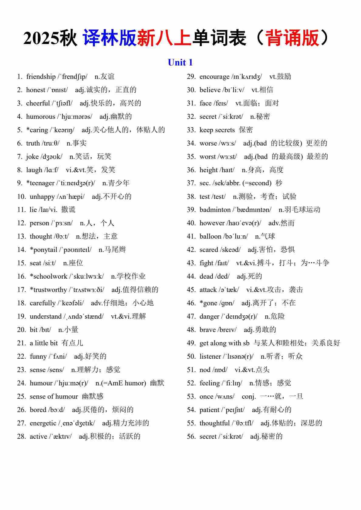 新译林版八上单词表(背诵版)定(1)