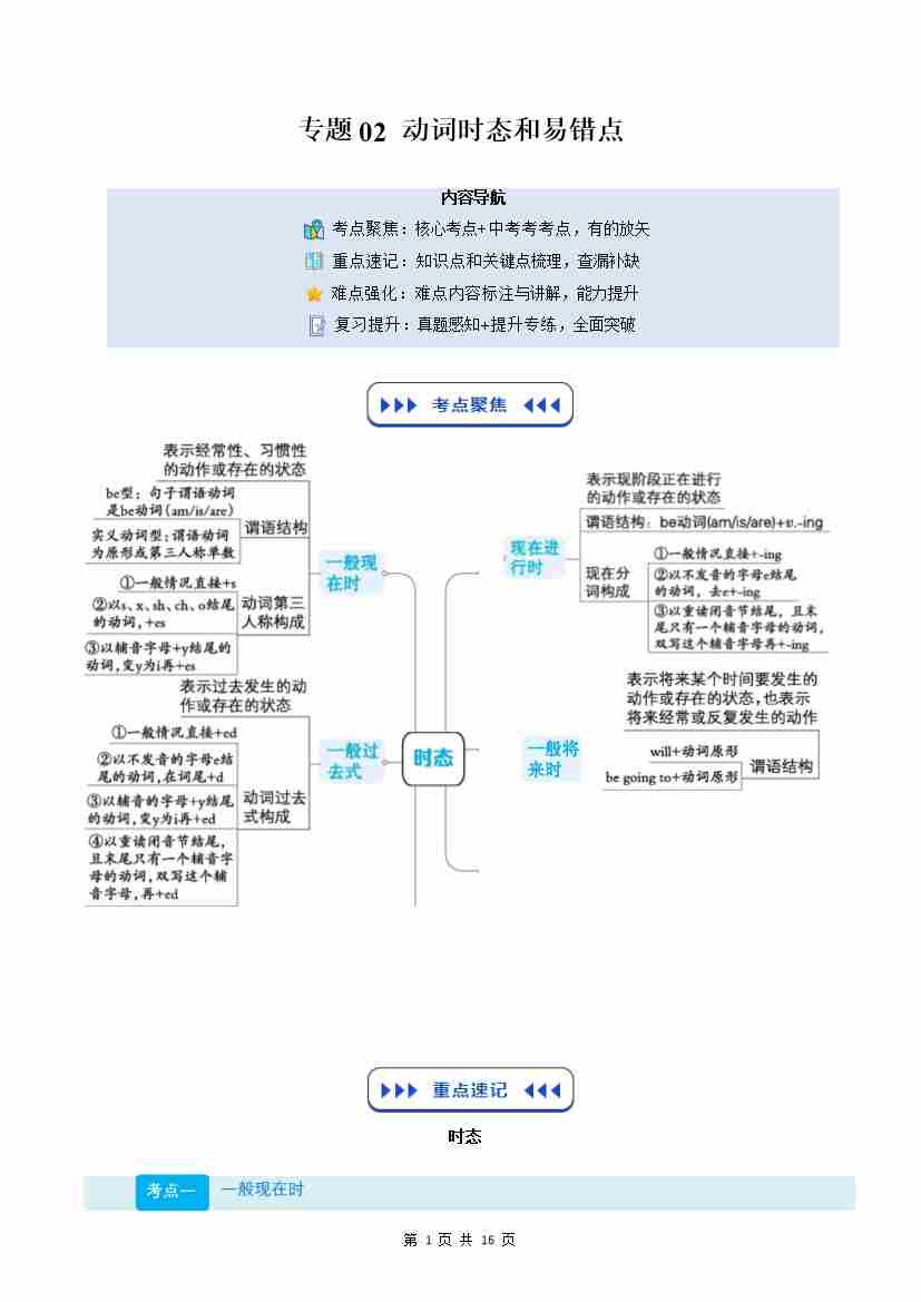 (复习部分)专题02 动词时态和易错点(原卷版)