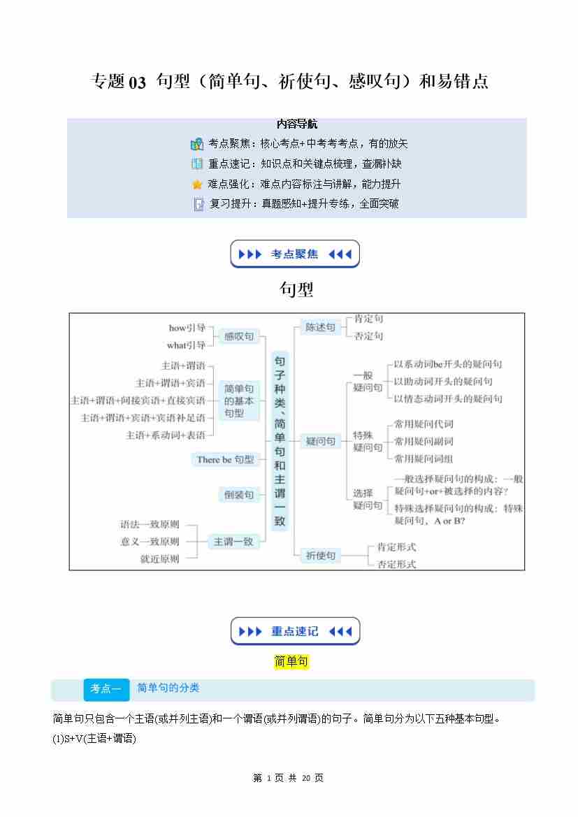 (复习部分)专题03 句型(简单句、祈使句、感叹句)和易错点(原卷版)