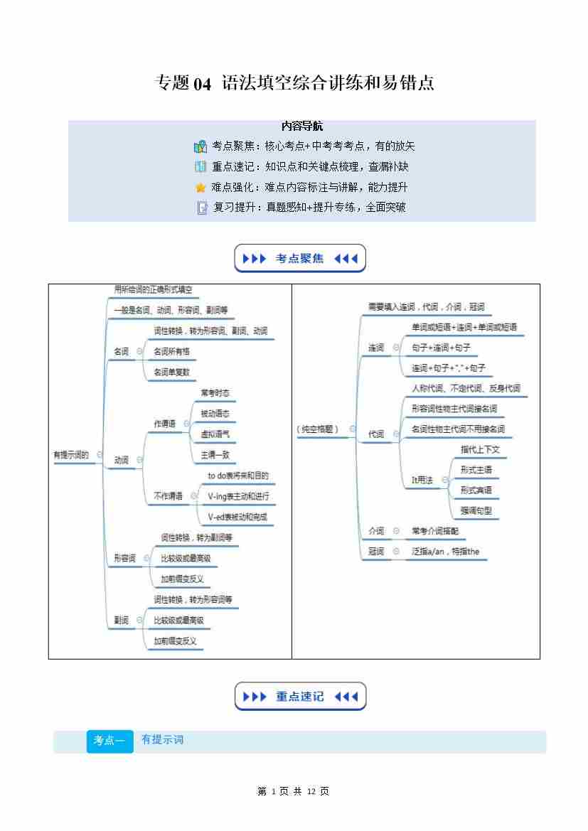 (复习部分)专题04 语法填空综合讲练和易错点(原卷版)
