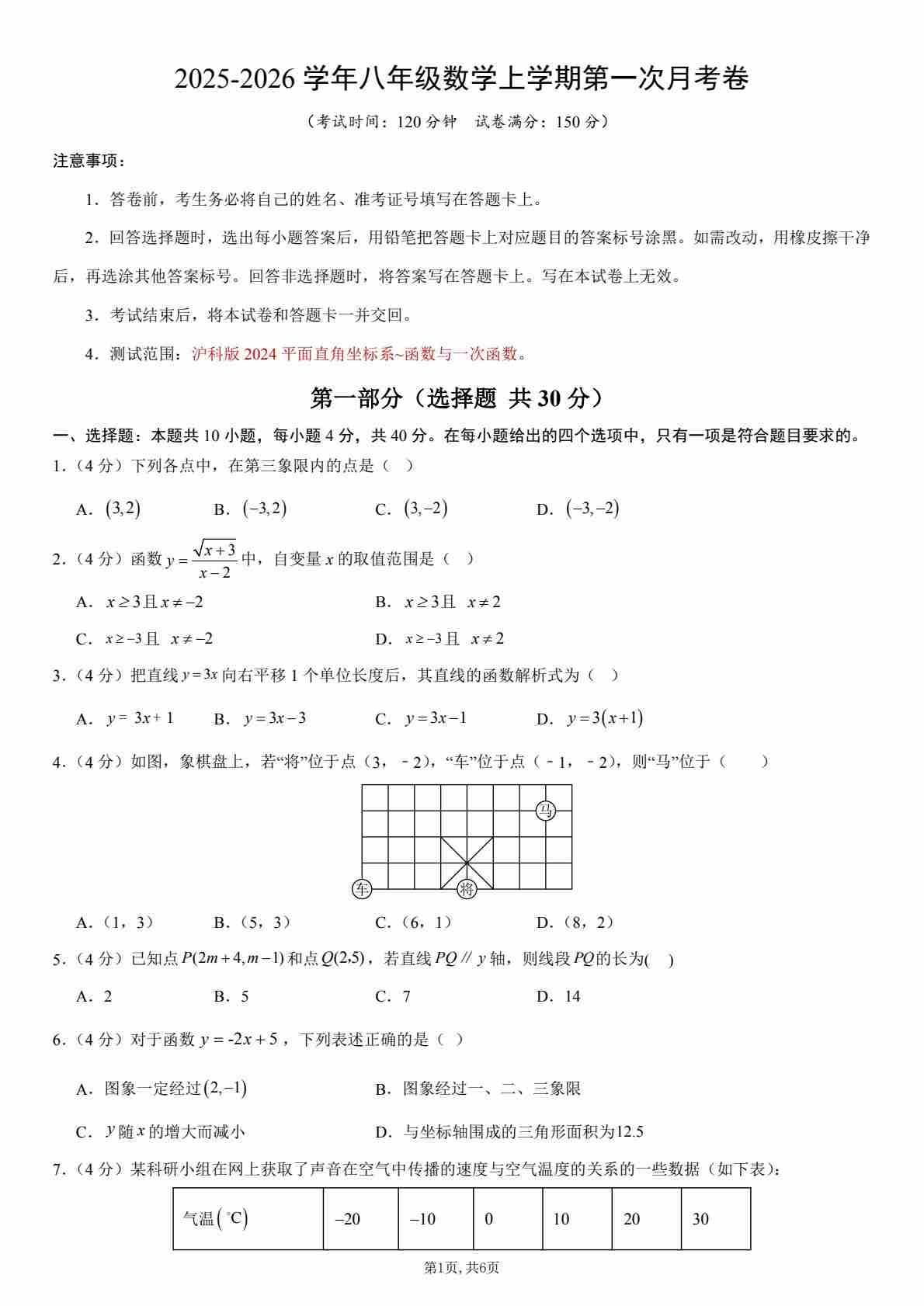 月考试卷