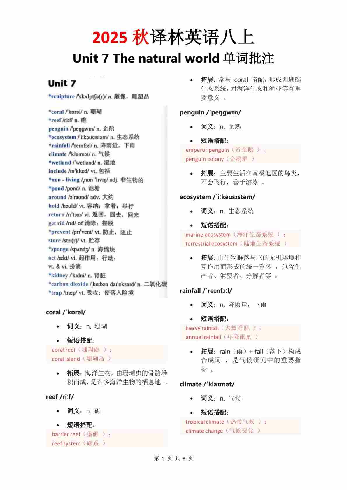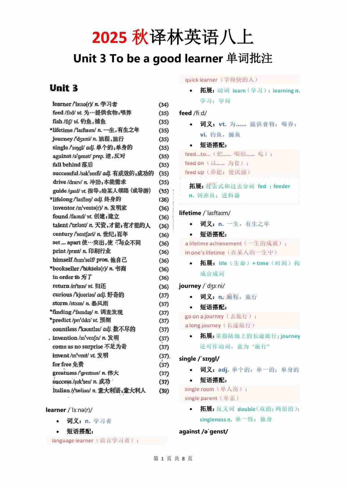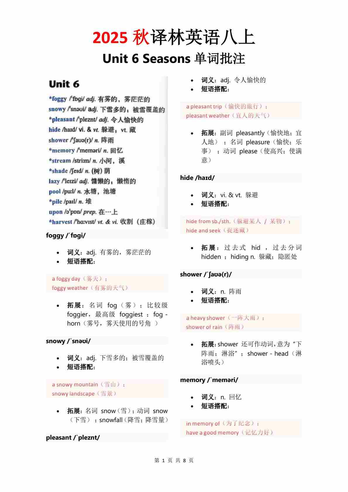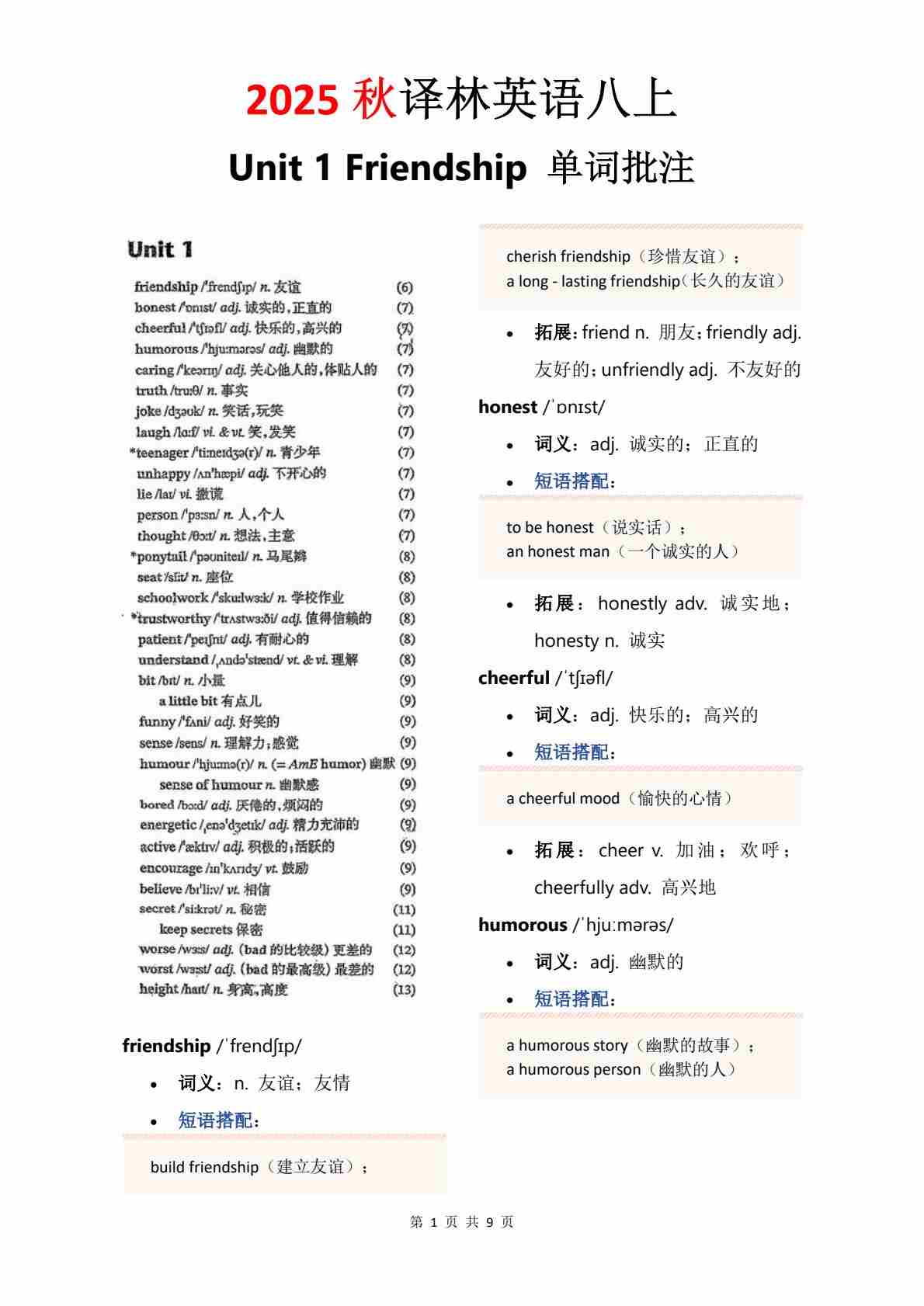 Unit 1 单词批注