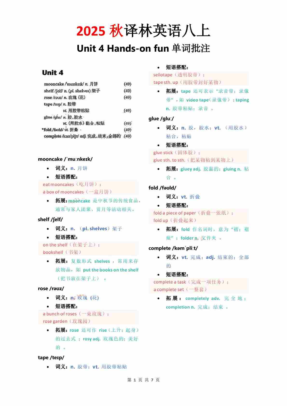 Unit 7 单词批注