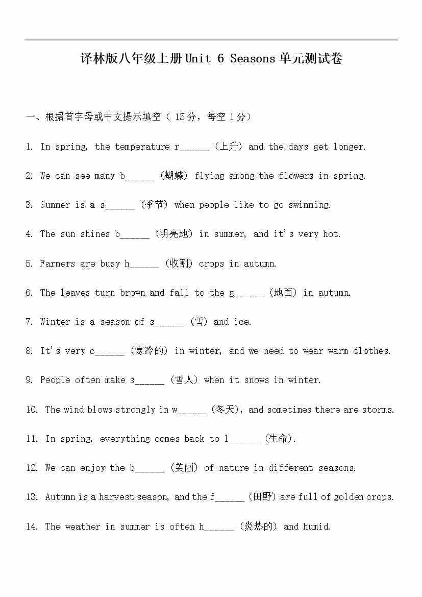 Unit 6 Seasons单元测试卷(含答案)