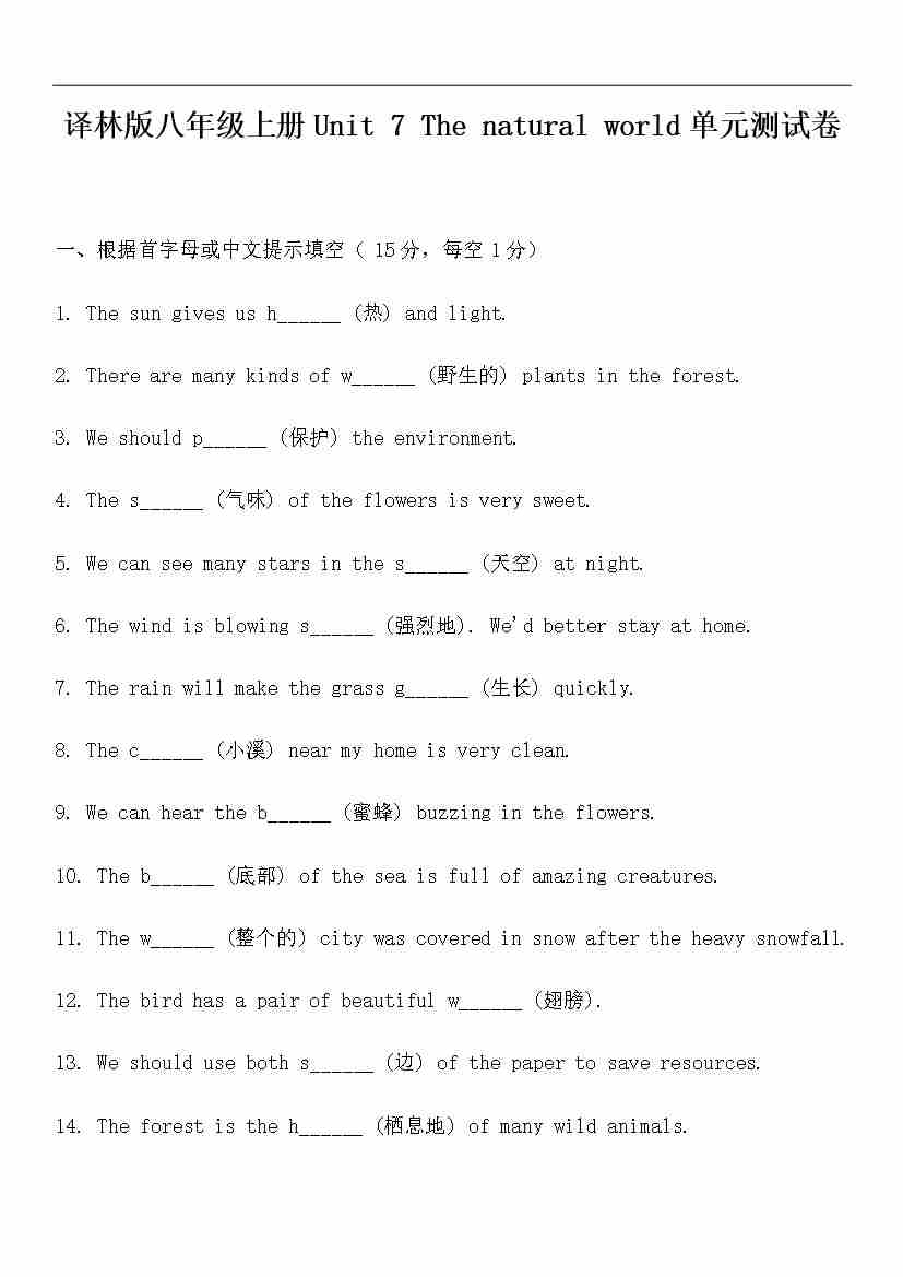 Unit 7 The natural world单元测试卷(含答案)