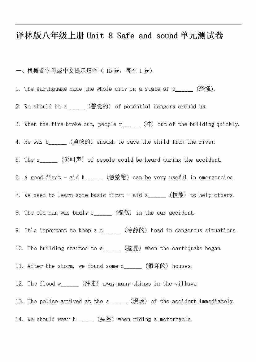 Unit 8 Safe and sound单元测试卷(含答案)