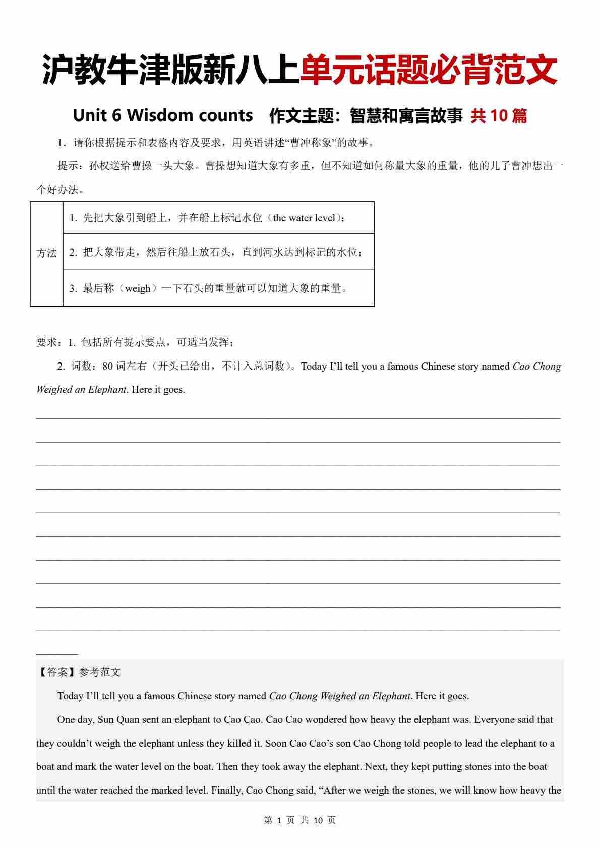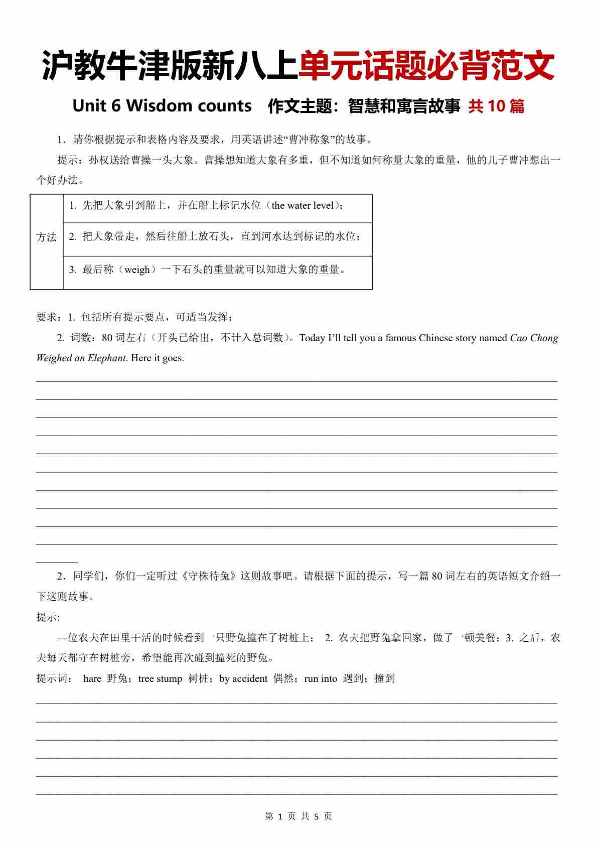 Unit 6 作文主题:智慧和寓言故事-沪教牛津版新八上单元话题必背范文(教师版)