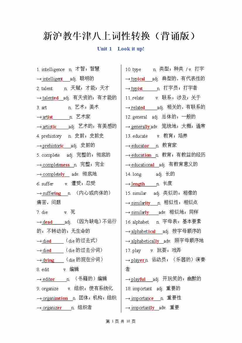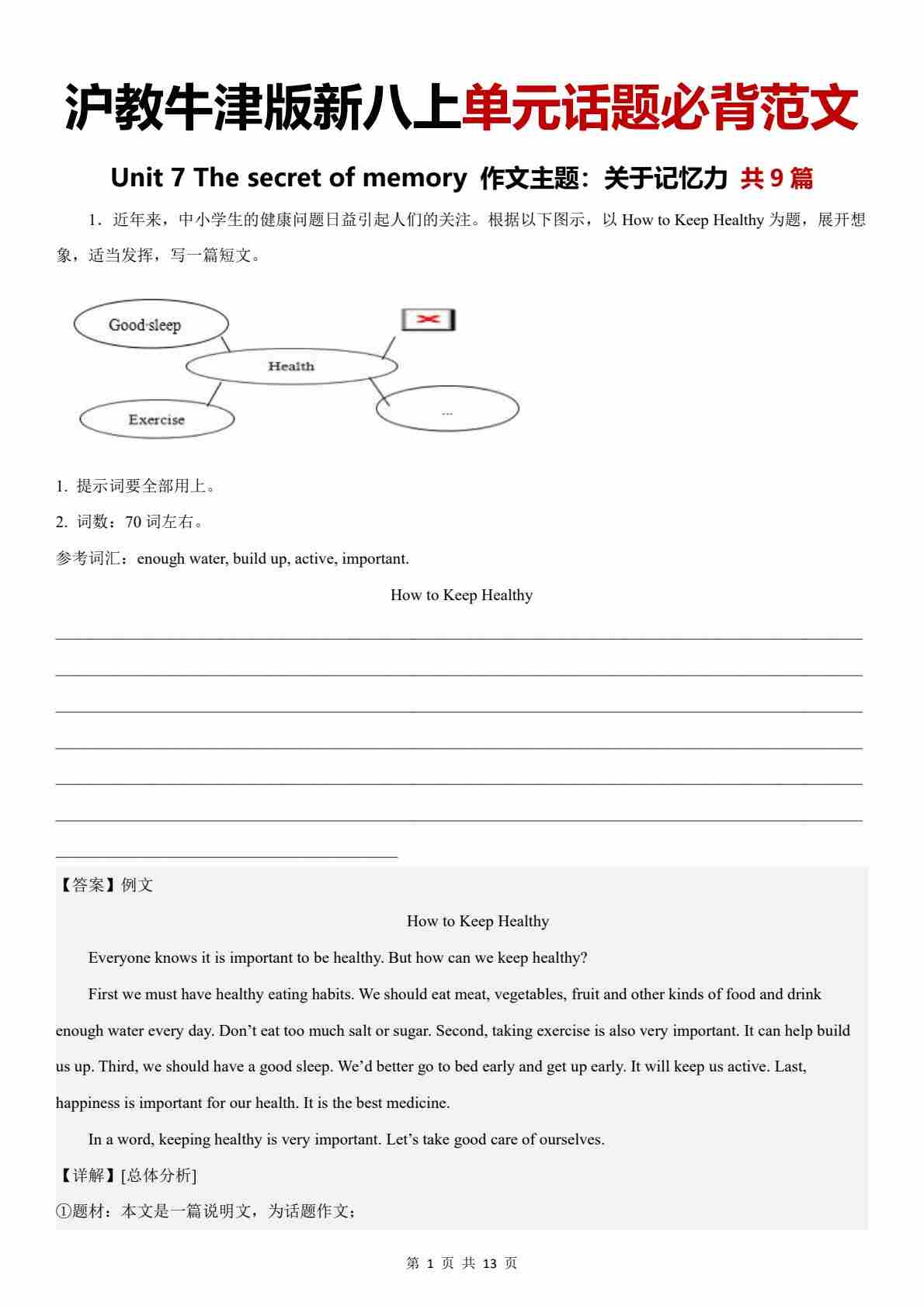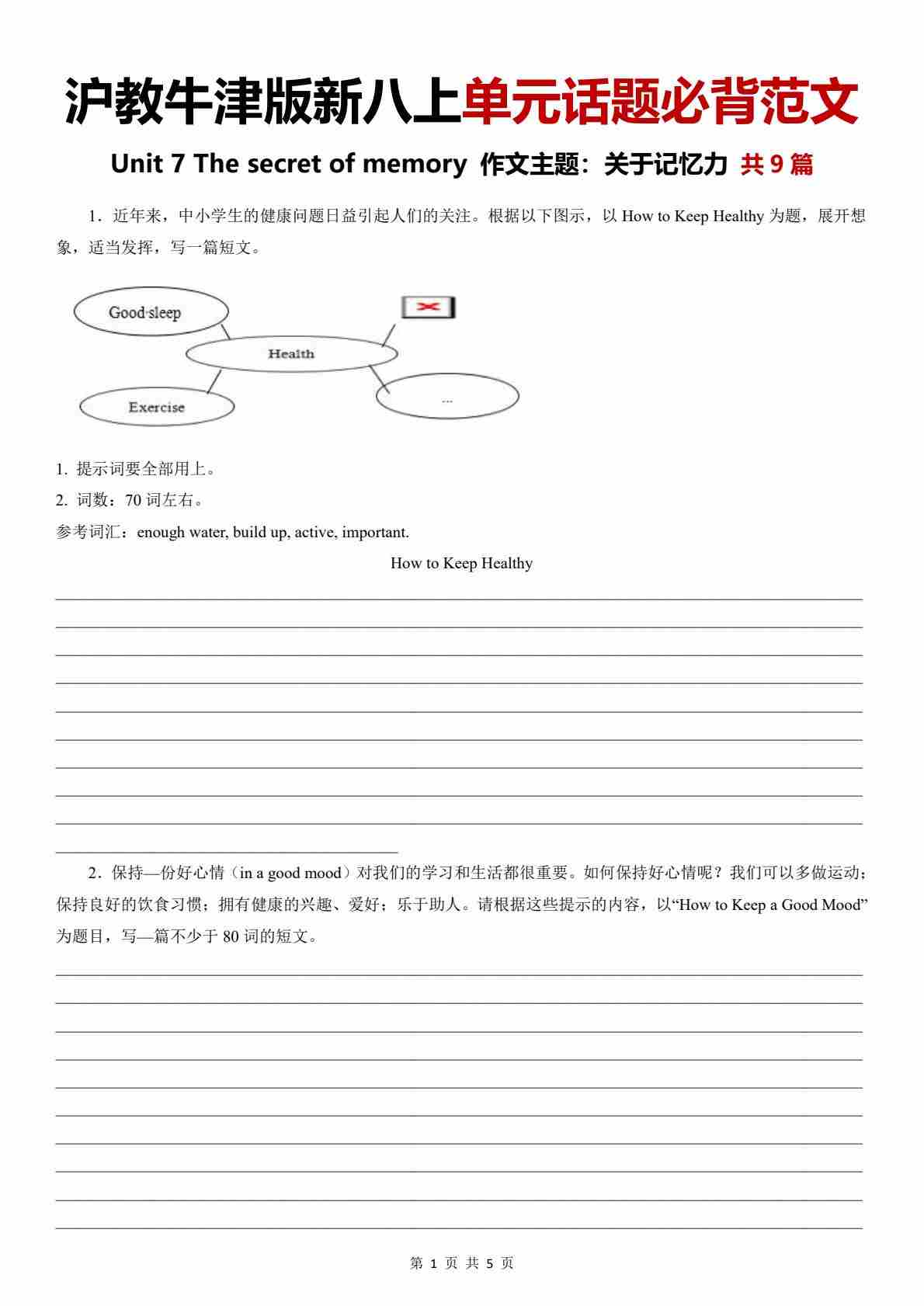 Unit 7 作文主题:关于记忆力-沪教牛津版新八上单元话题必背范文(教师版)