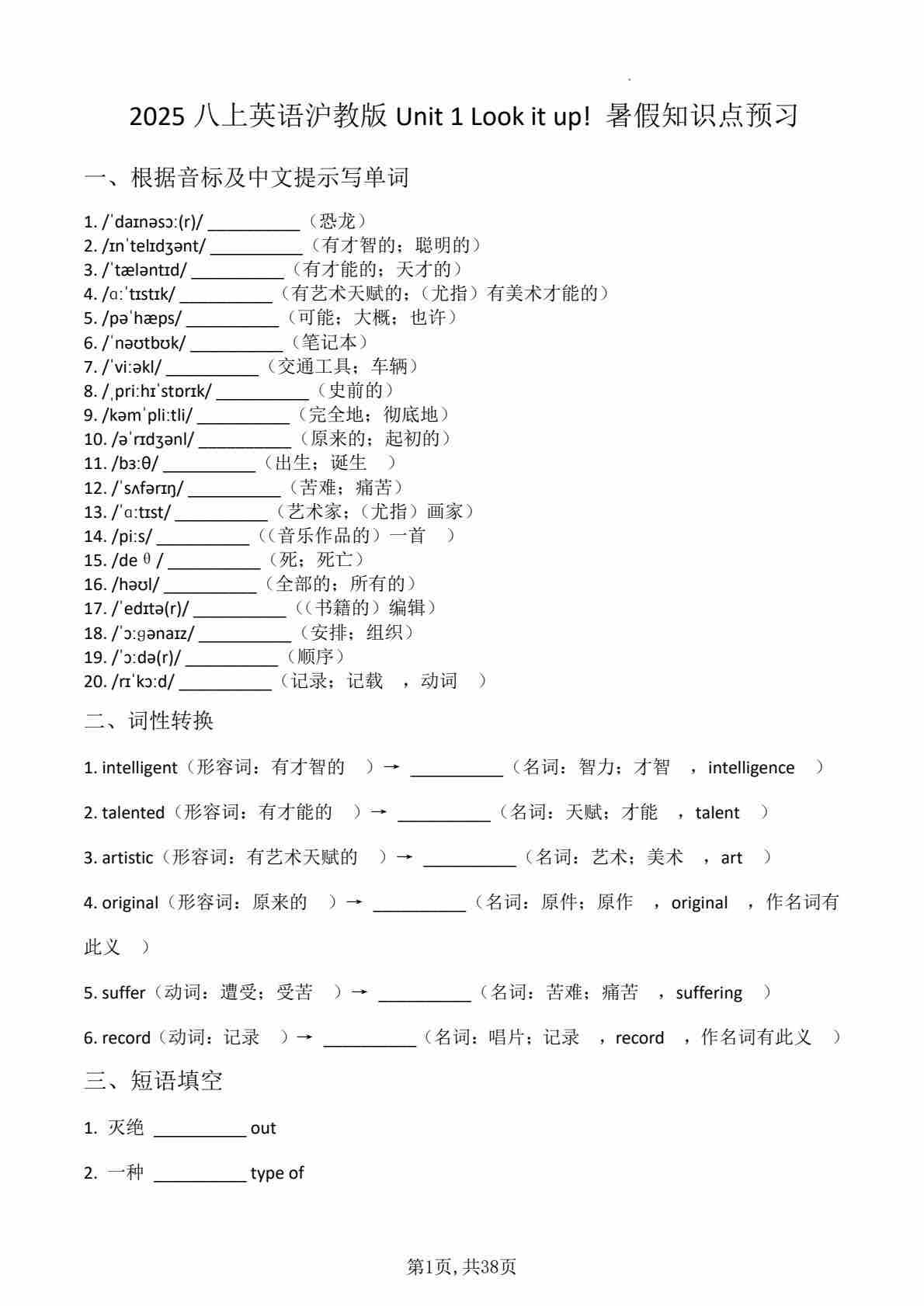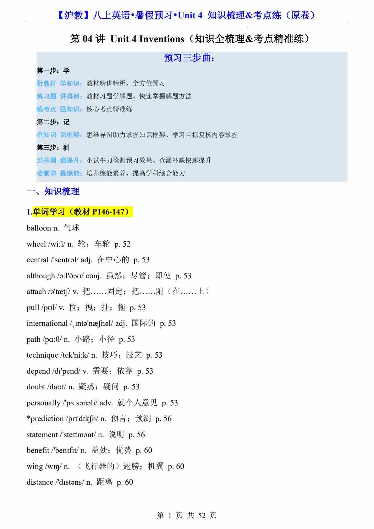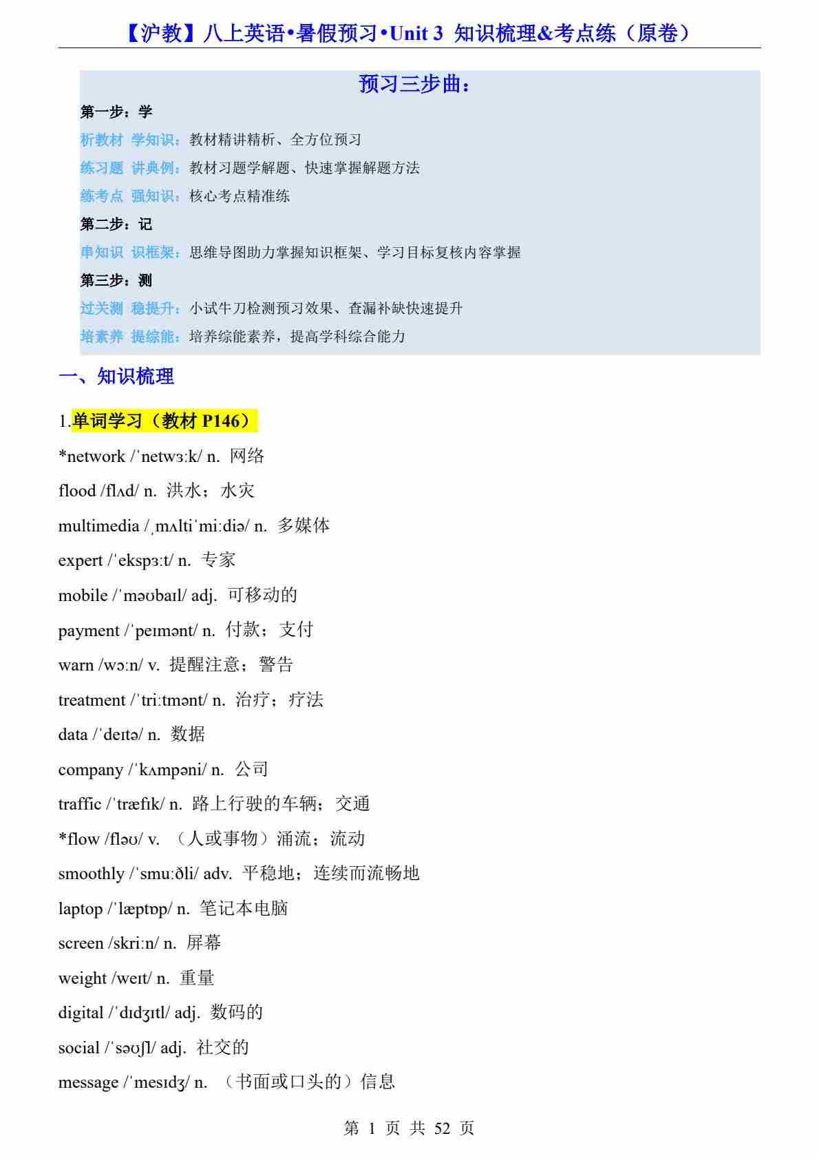 2025年暑假沪教版(2024)八年级英语上册Unit 1-7单元 知识点预习(2)