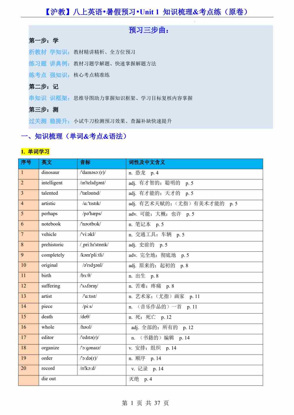 Unit 1 Look it up!知识梳理&考点练