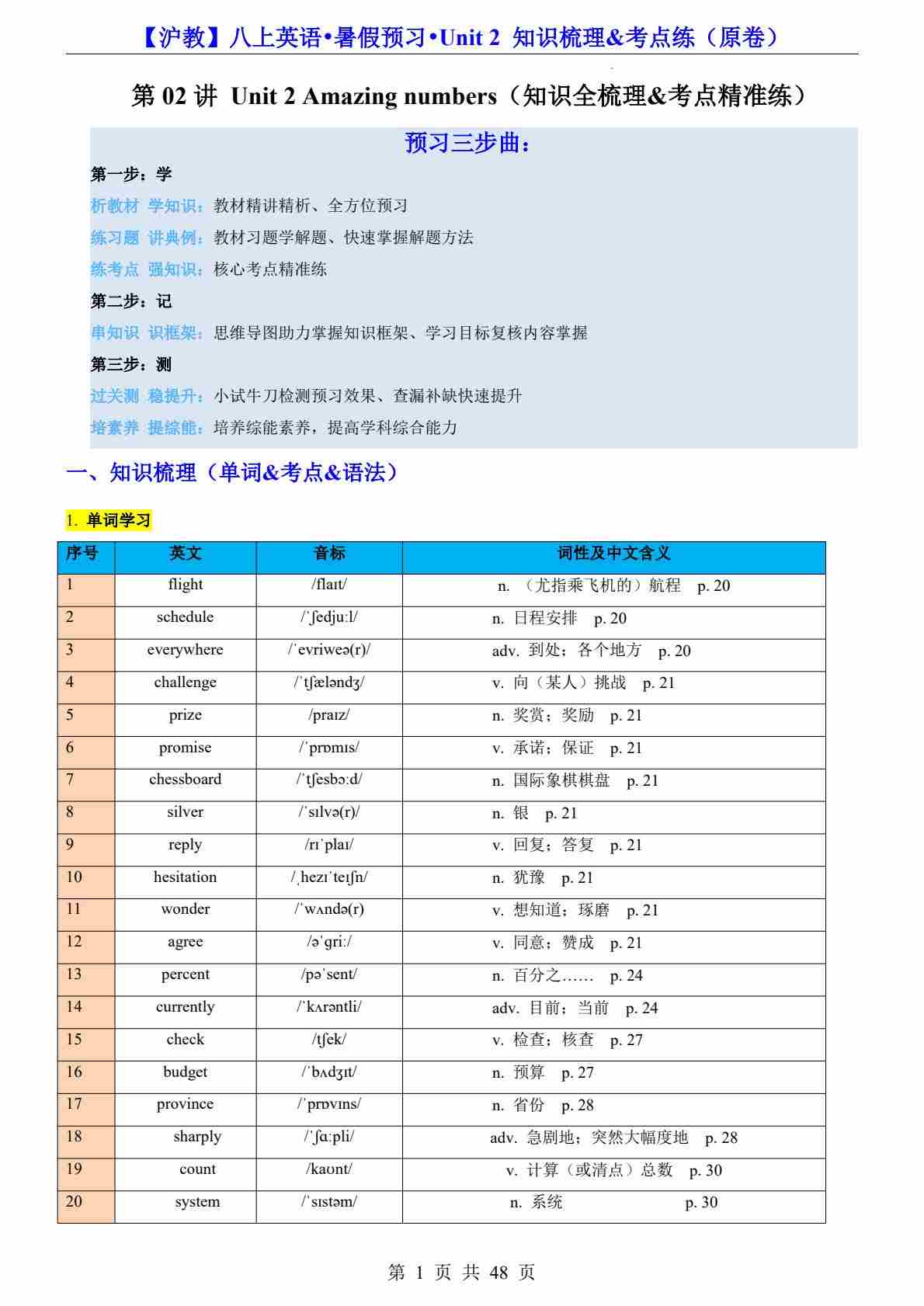 Unit 2 Amazing numbers知识梳理&考点练