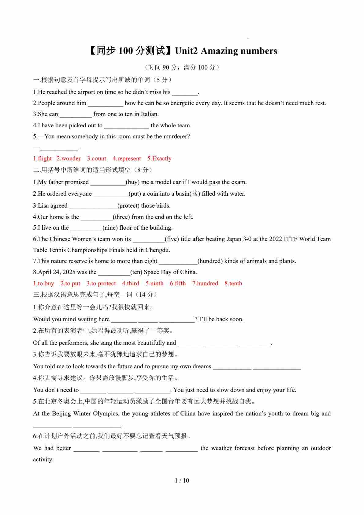 Unit2 Amazing numbers(解析版)