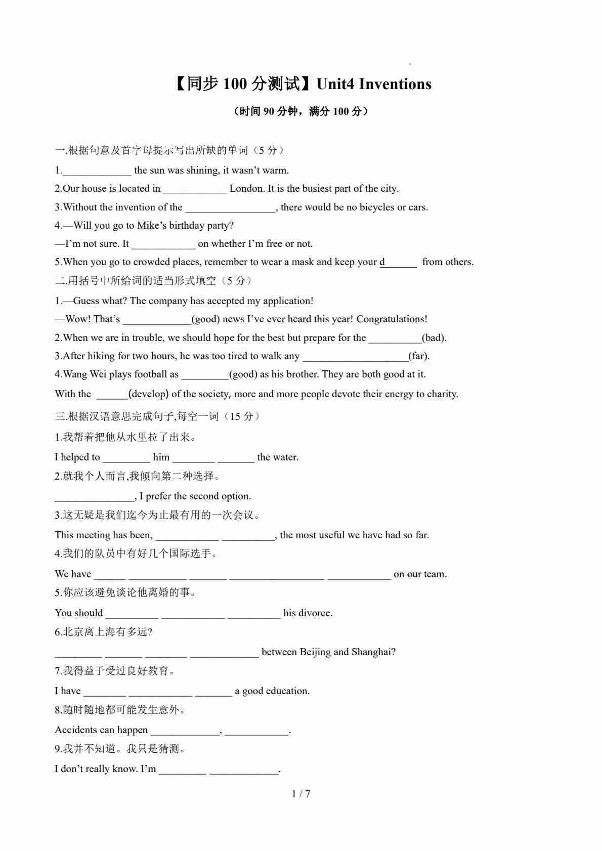 Unit4 Inventions(解析版)