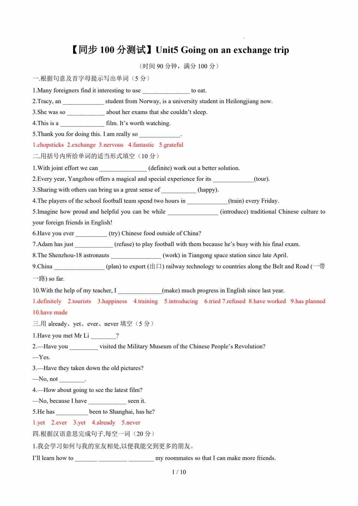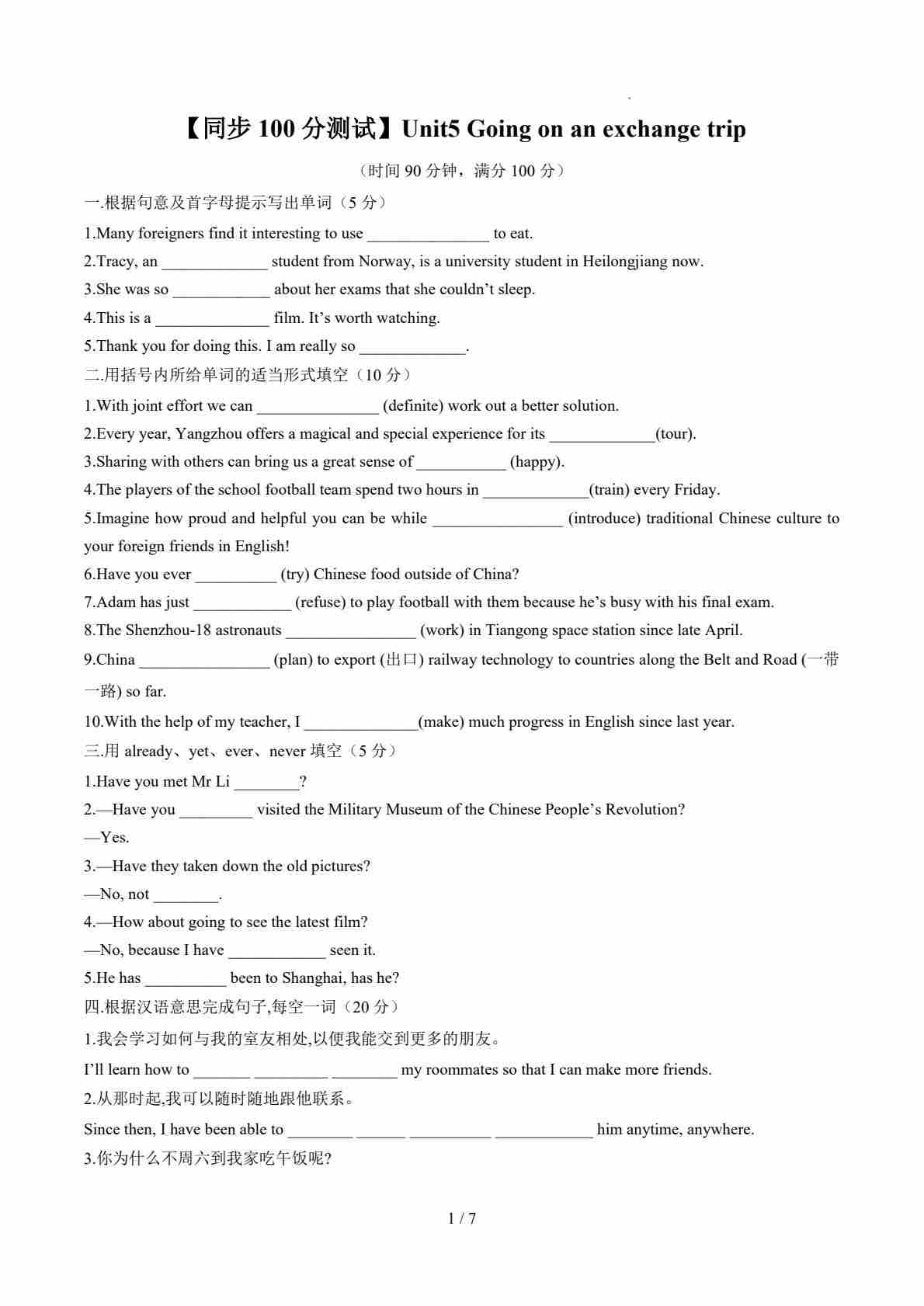 Unit5 Going on an exchange trip(解析版)