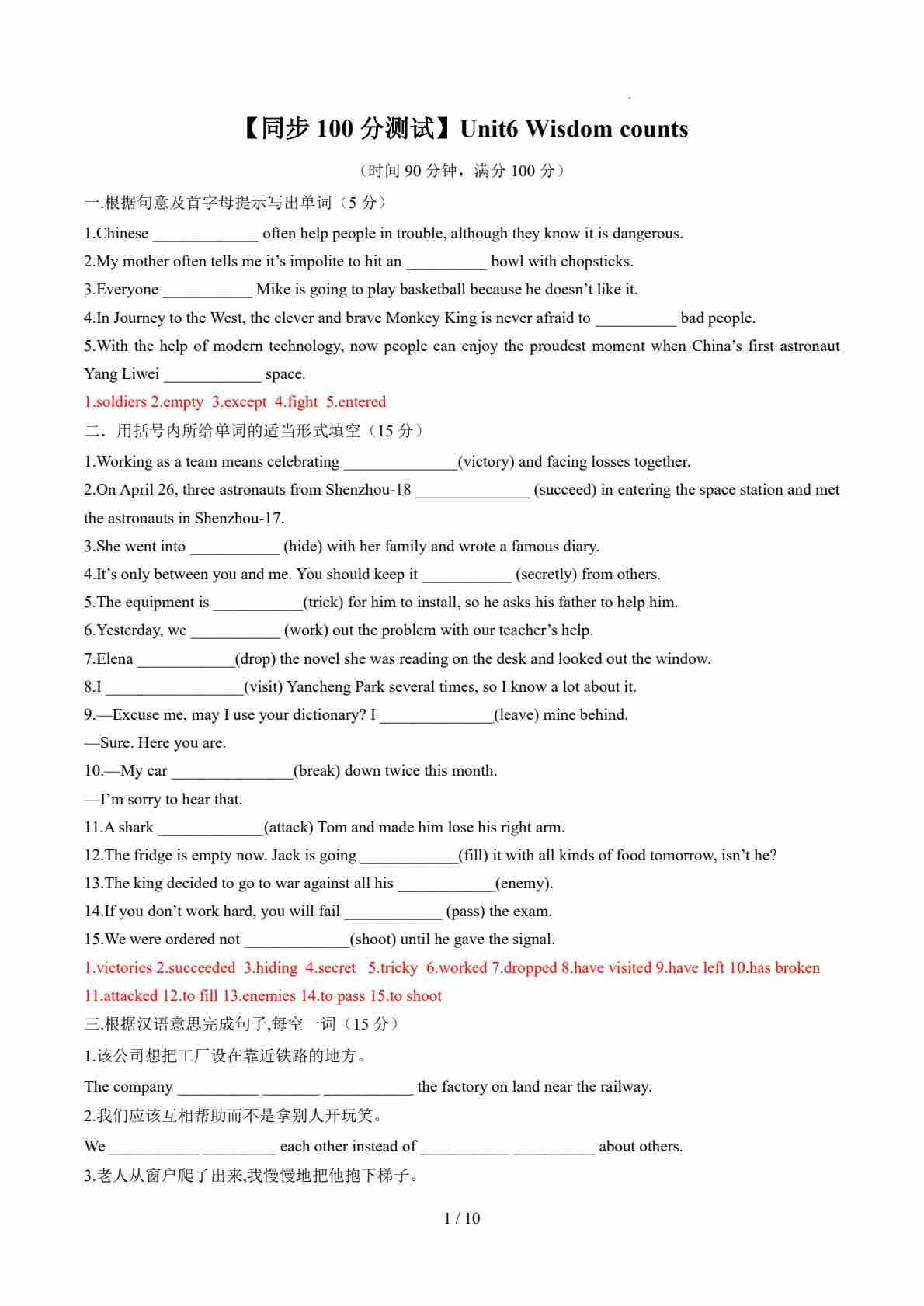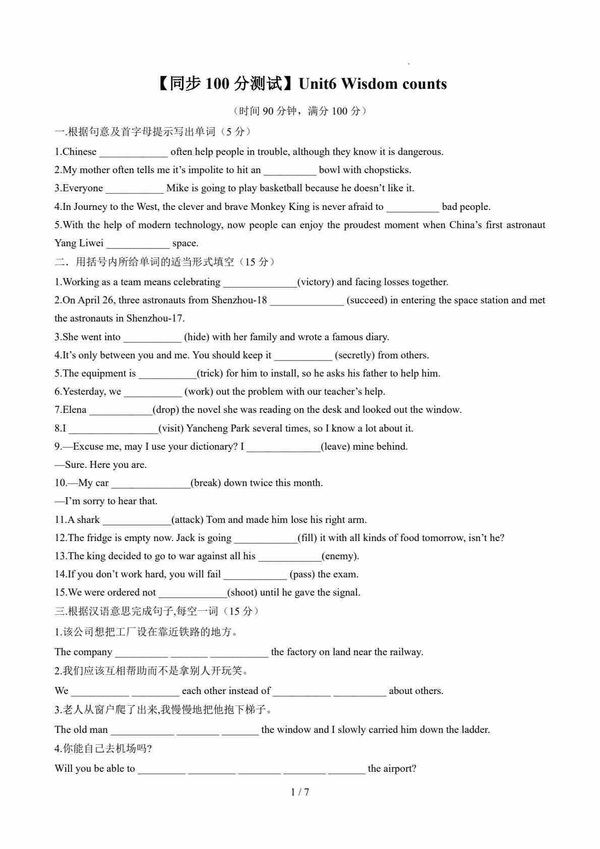 Unit6 Wisdom counts(解析版)